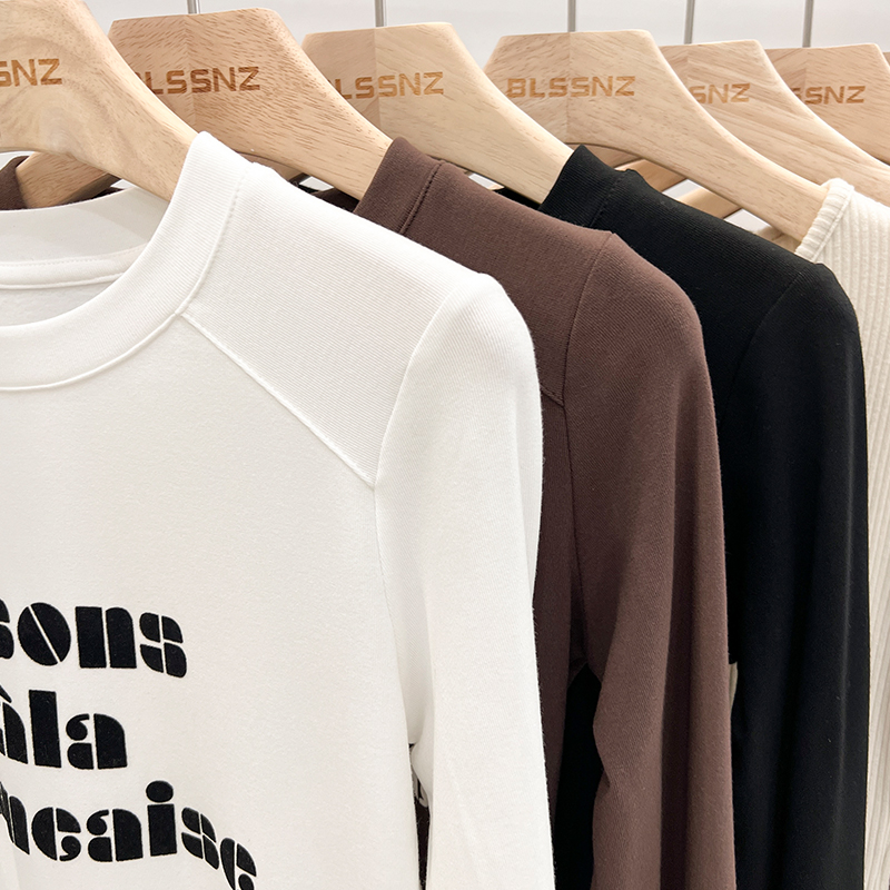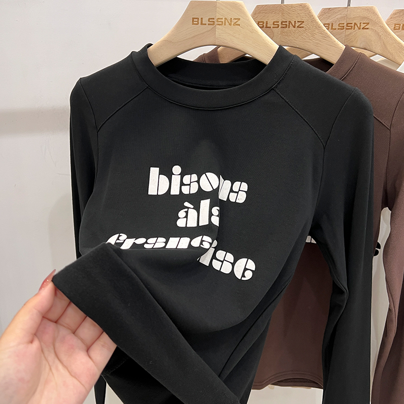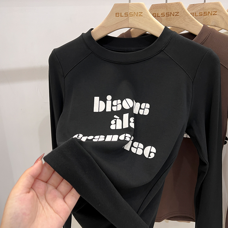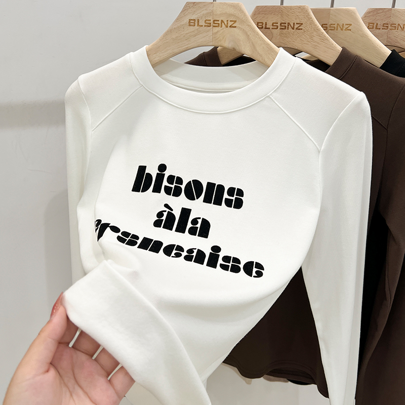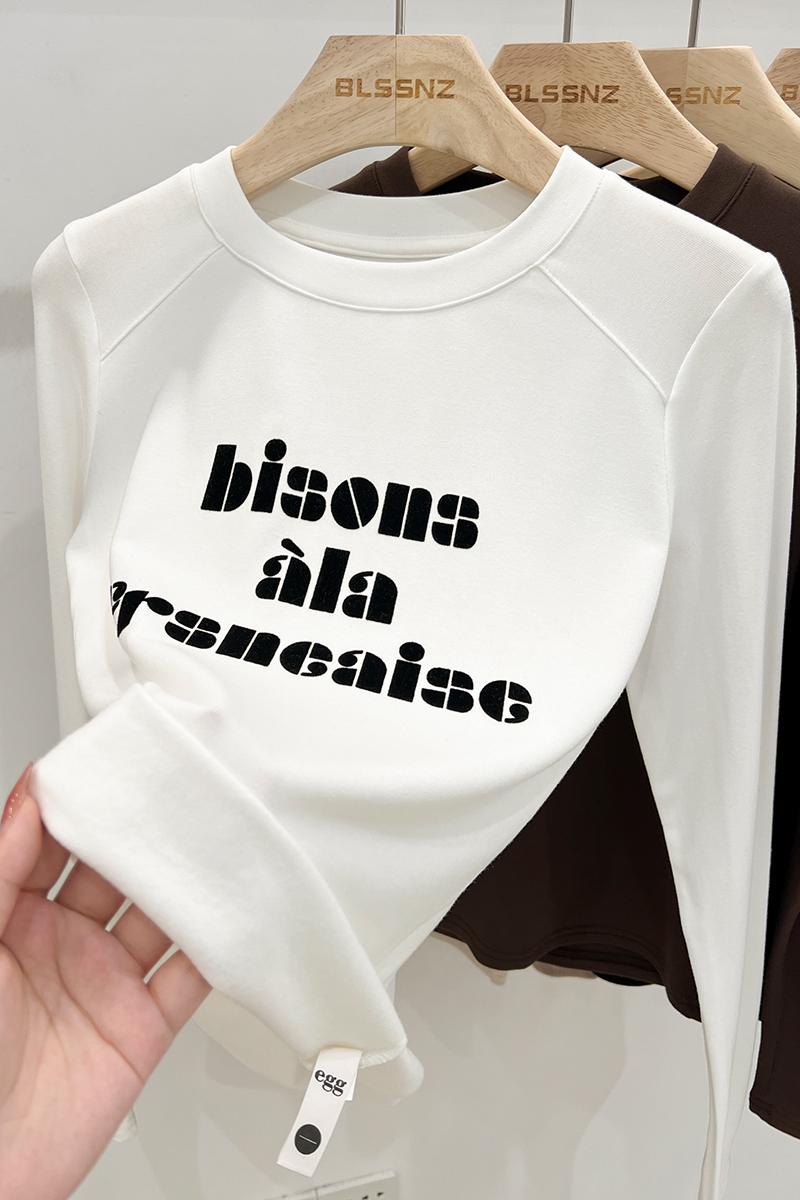 실제 가격 실제 샷 #화이트 편지 연삭 플러스 가을과 겨울 틈새 기본 셔츠 속옷에 여성을위한 벨벳 어깨 롱 슬리브 티셔츠