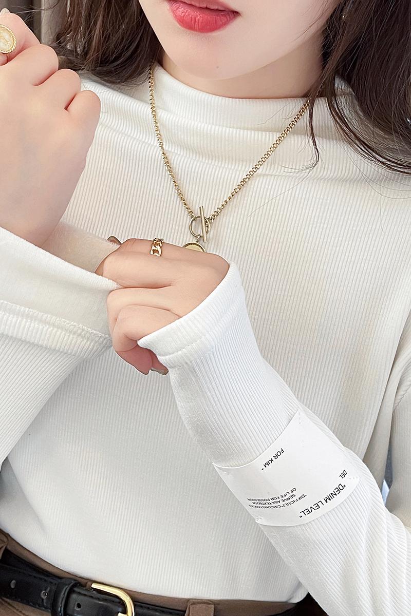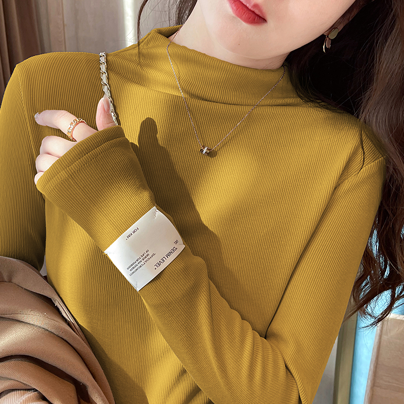 실제 가격#가을과 겨울 스타일의 여성을위한 하프 높이 목 바닥 셔츠 여성을위한 긴팔 티셔츠를 입은 고급 슬림 한 몸매
