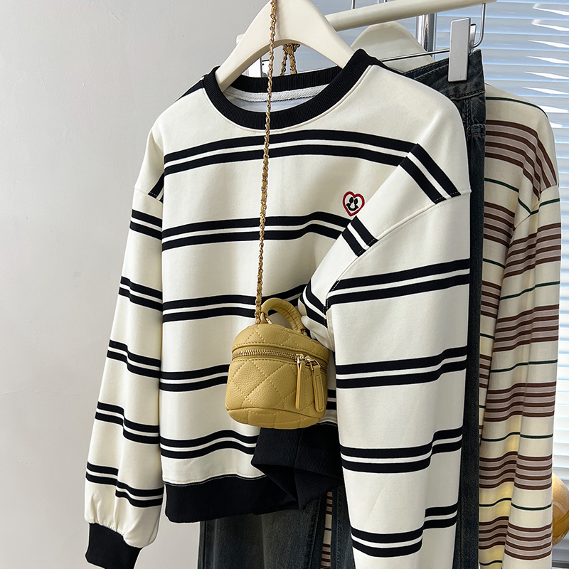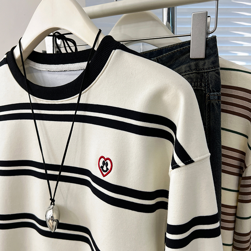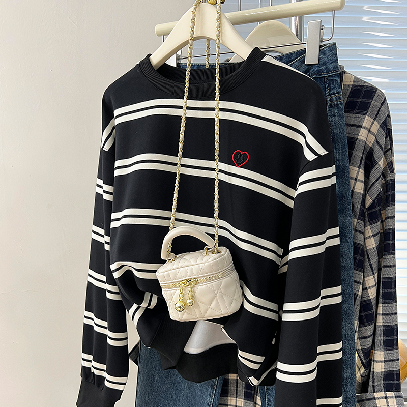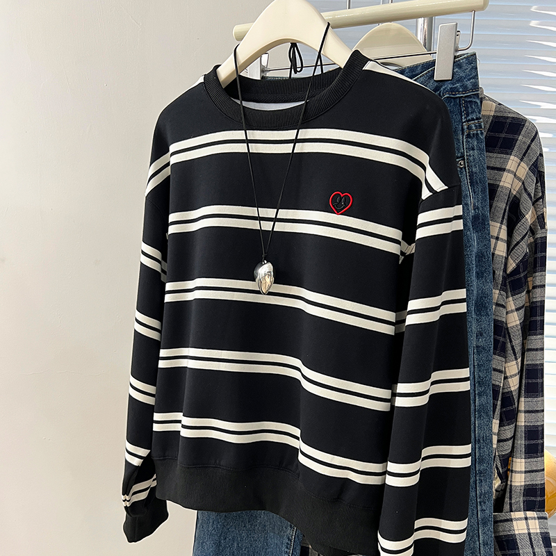 Real Price Real Shot #American Retro Black Love Stifed Sweatshirt Coat Women을위한 대형 느슨한 탑