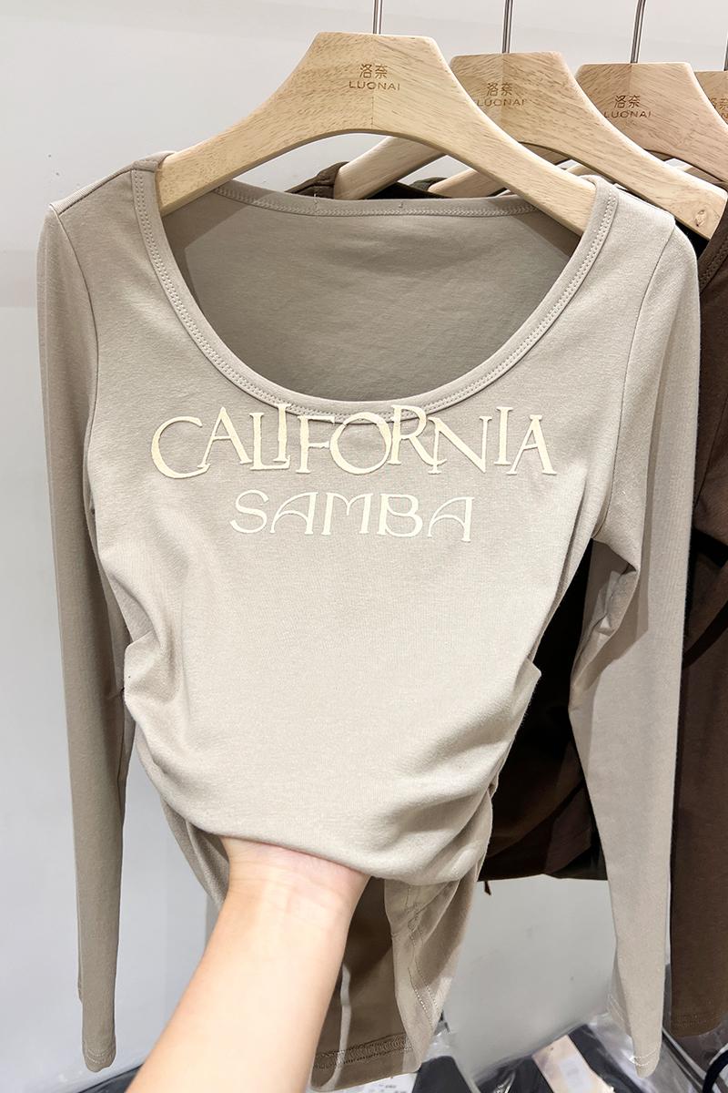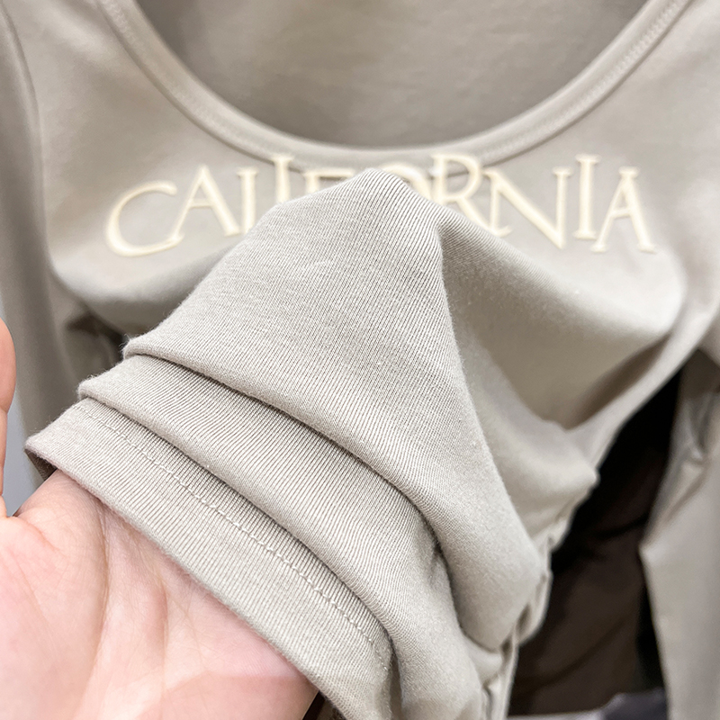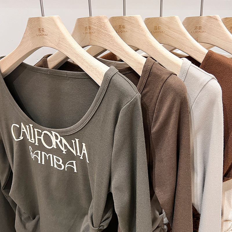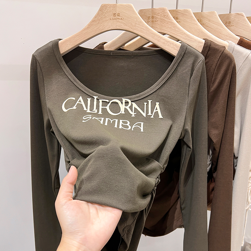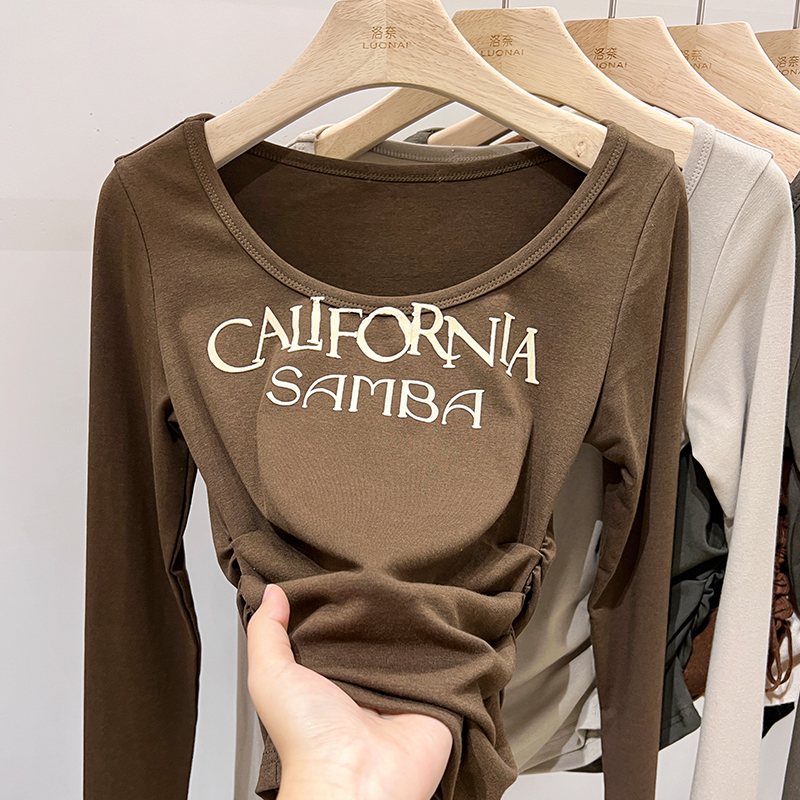Real-Price Real-Life Shot #American Irregular Shoulder Long-Sleeved T-Spring and Autumn Design Bottoming Short Top