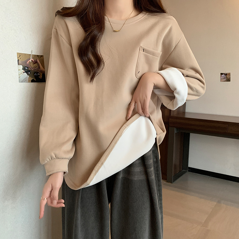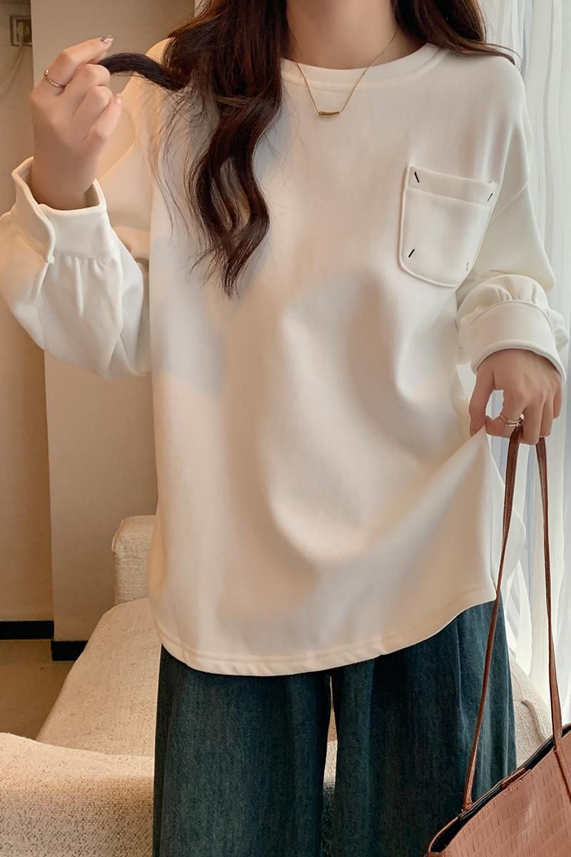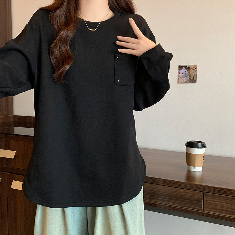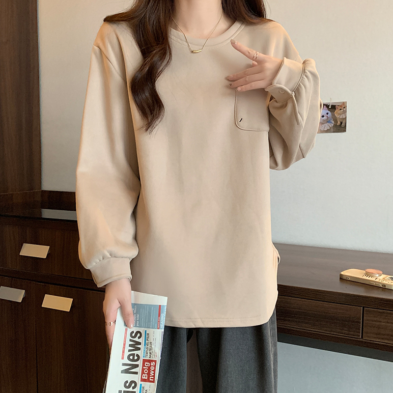 Real-Price Real Shot #Simple SILLICE CULD CUVED HEM SLIT SLIT SHEATSHIRT LONG SLEEVES 중간 길이 느슨한 가을과 겨울