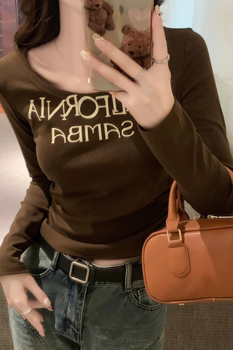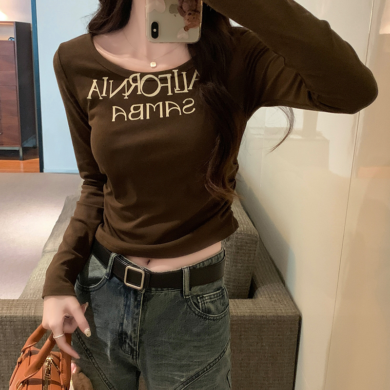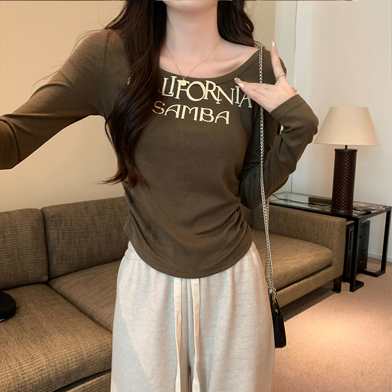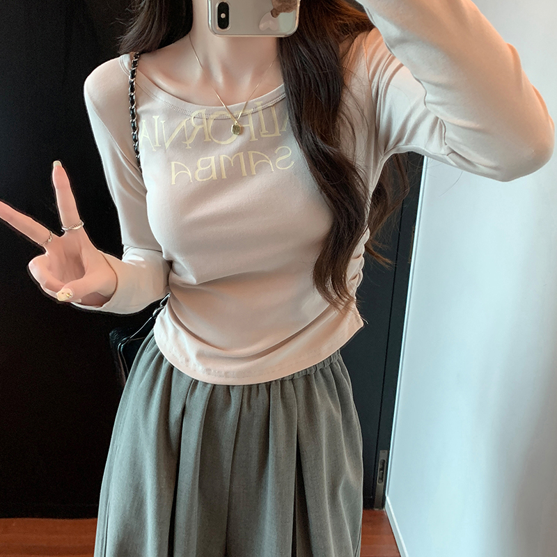 진짜 가격 실제 생활 사진 #아미니아 레트로 대형 네크 라인 가을 디자인에서 여성을위한 긴팔 티셔츠가 가을 디자인 셔츠 슬림 한 짧은 탑
