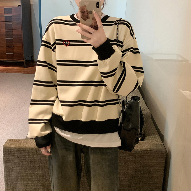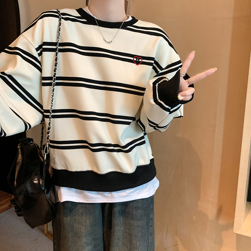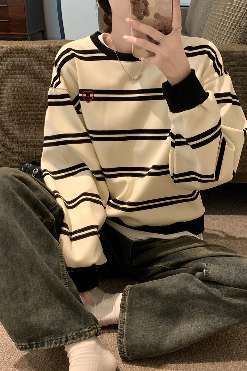 Real Price Real Shot #American Retro Black Love Stifed Sweatshirt Coat Women을위한 대형 느슨한 탑