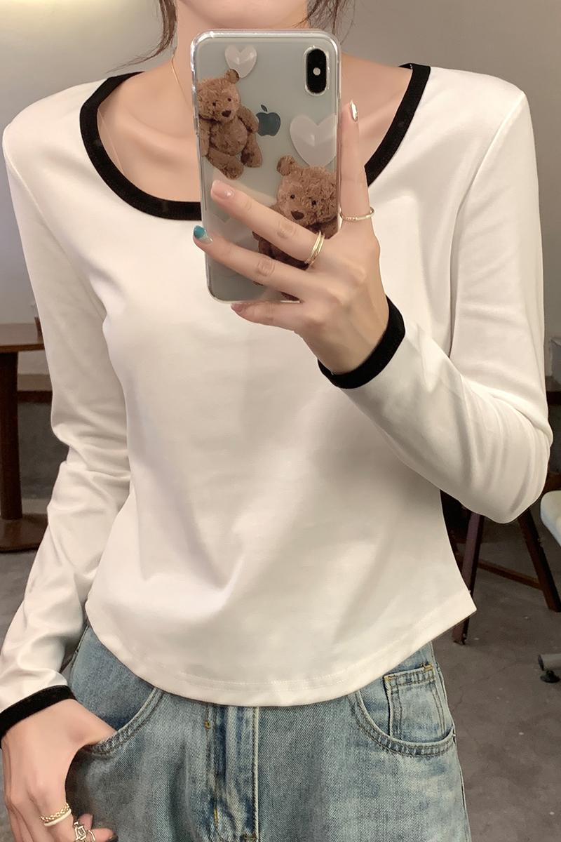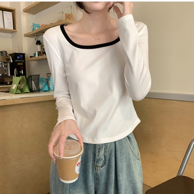 미국 스타일의 프론트 어깨 큰 네크 라인 가을 디자인 틈새 틈새 시장에서 여성을위한 긴팔 티셔츠