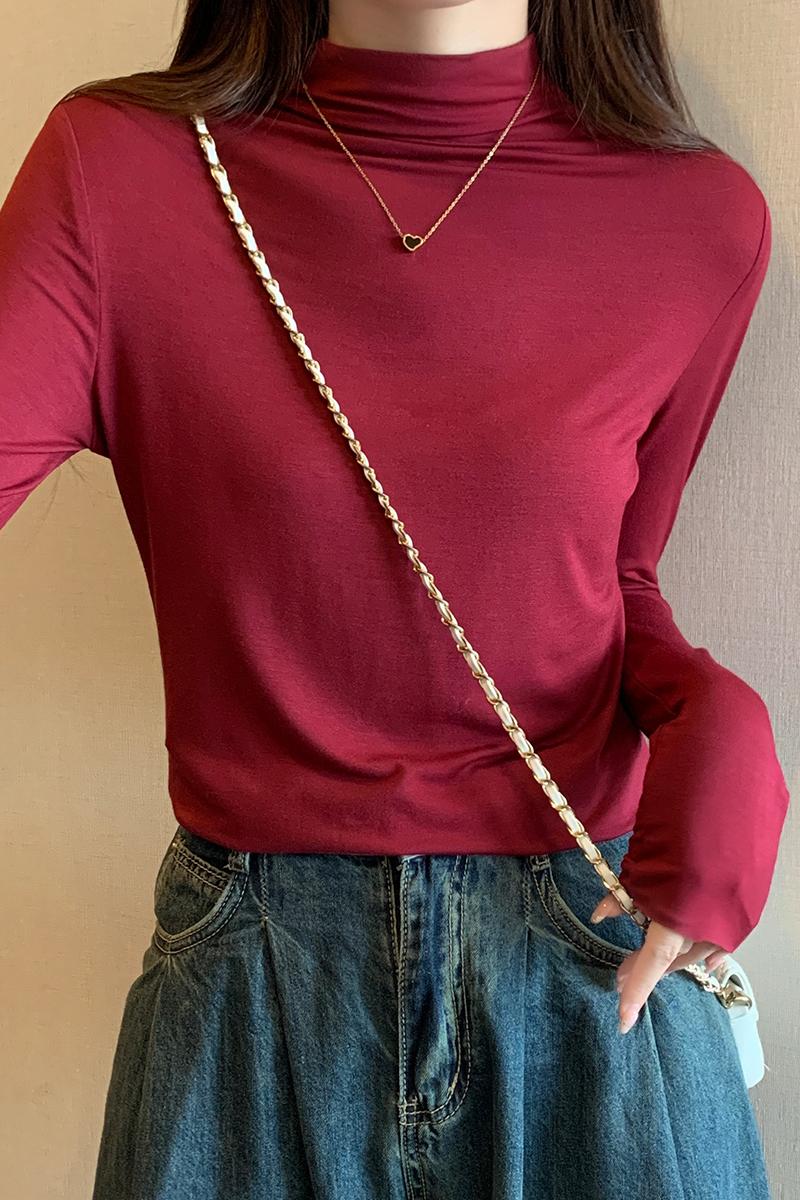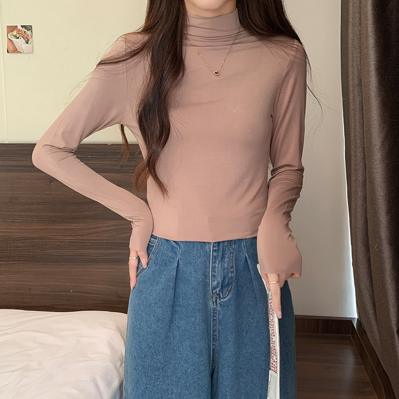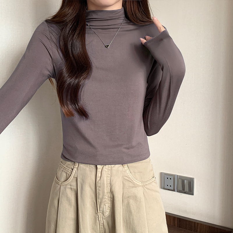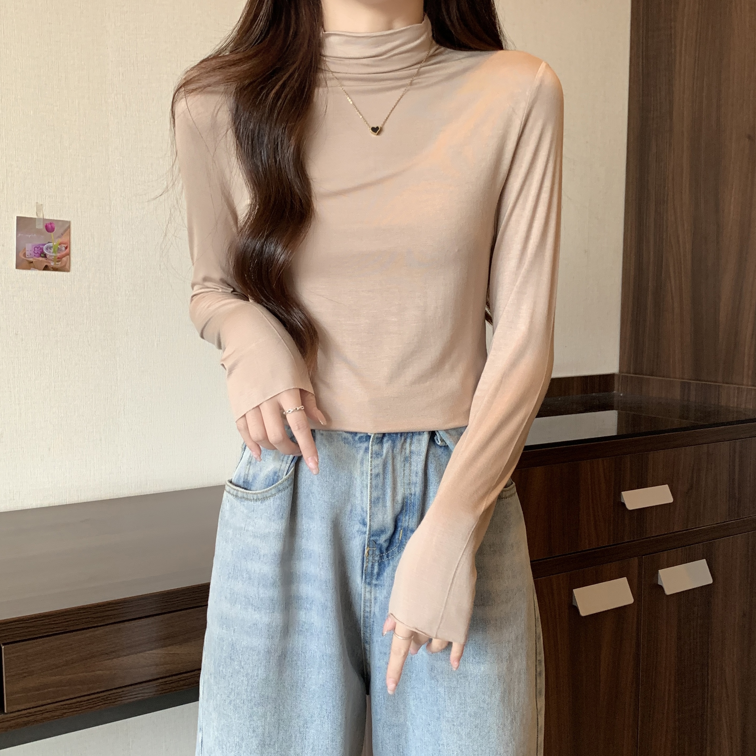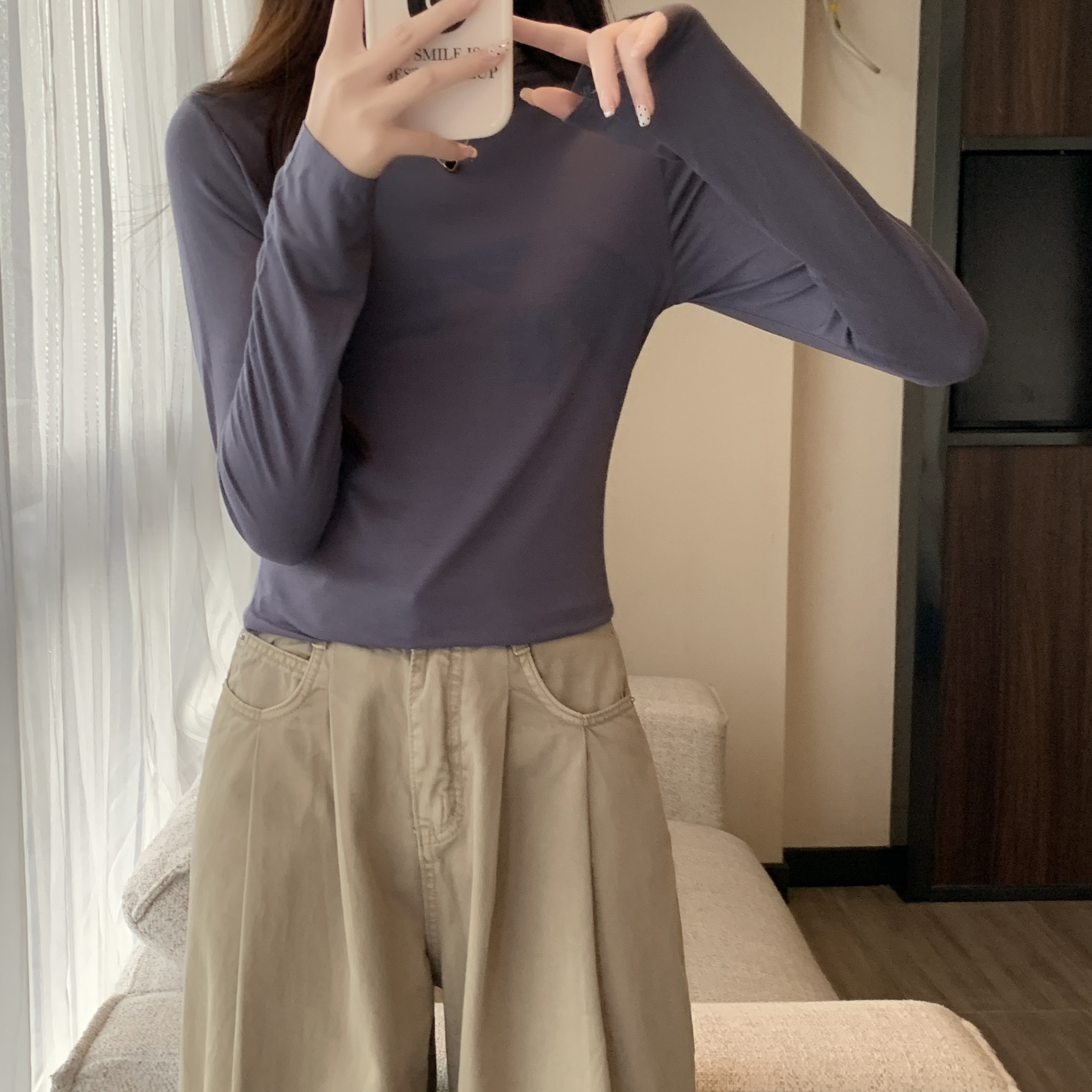 Real-Erfice Real-Life Shot #Fall 및 Winter New Solygel Vertatile High High Long-High Long-Sleeved T-Shirt for Women 's Inner Inner Base Slim Body
