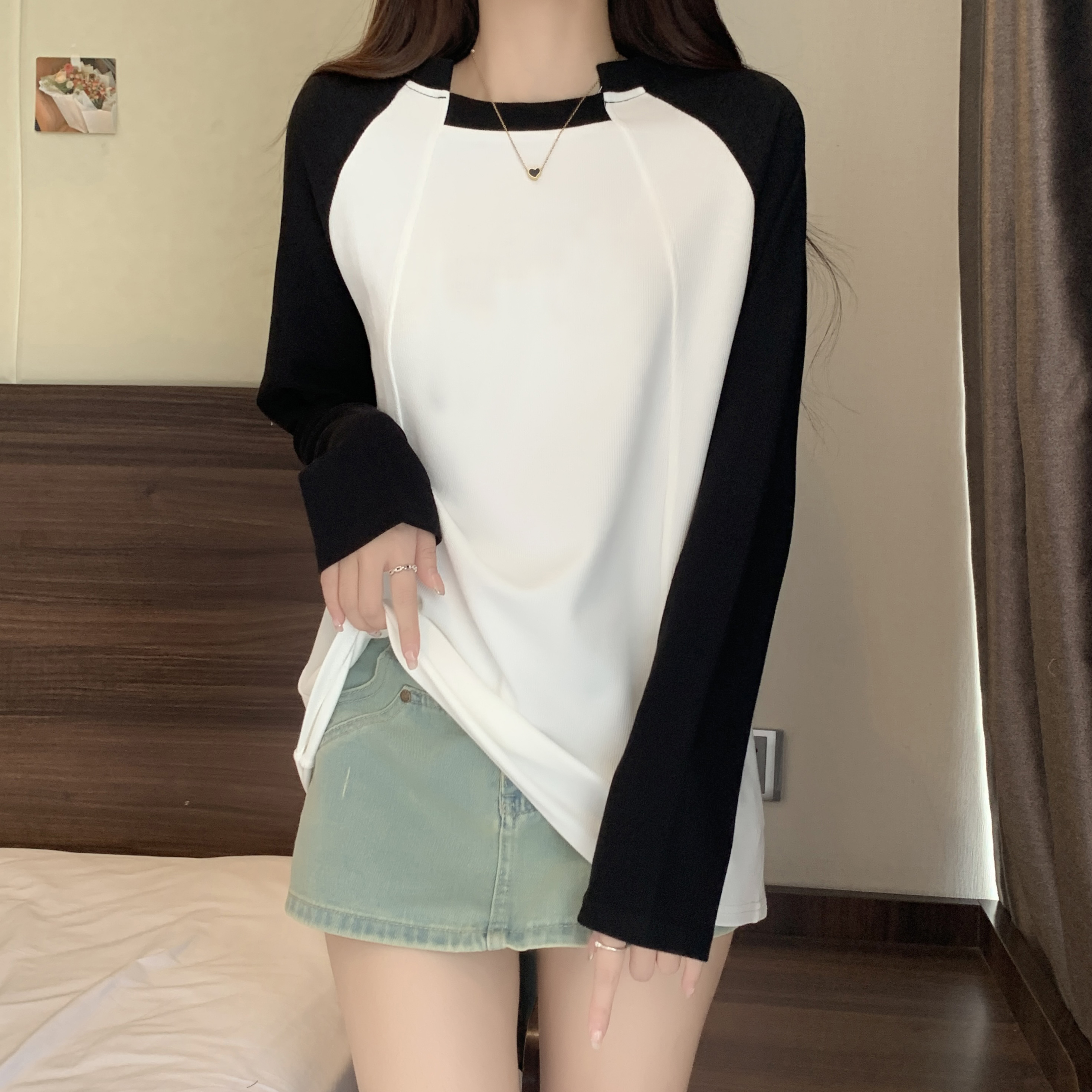 실제 가격 실제 샷 #retro ragdoll 슬리브 가을 디자인 틈새 틈새 틈