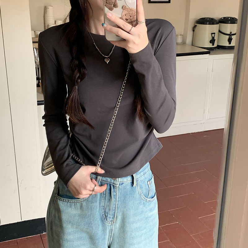 불규칙 어깨 롱-슬리브 티셔츠