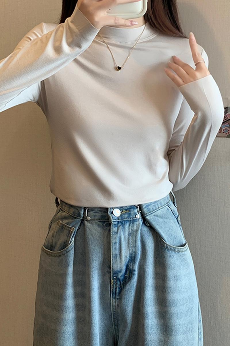 모달 장장 티셔츠 가을에있는 여성용 가을 반쯤 높은 목 바닥 셔츠 슬림하고 세련된 탑