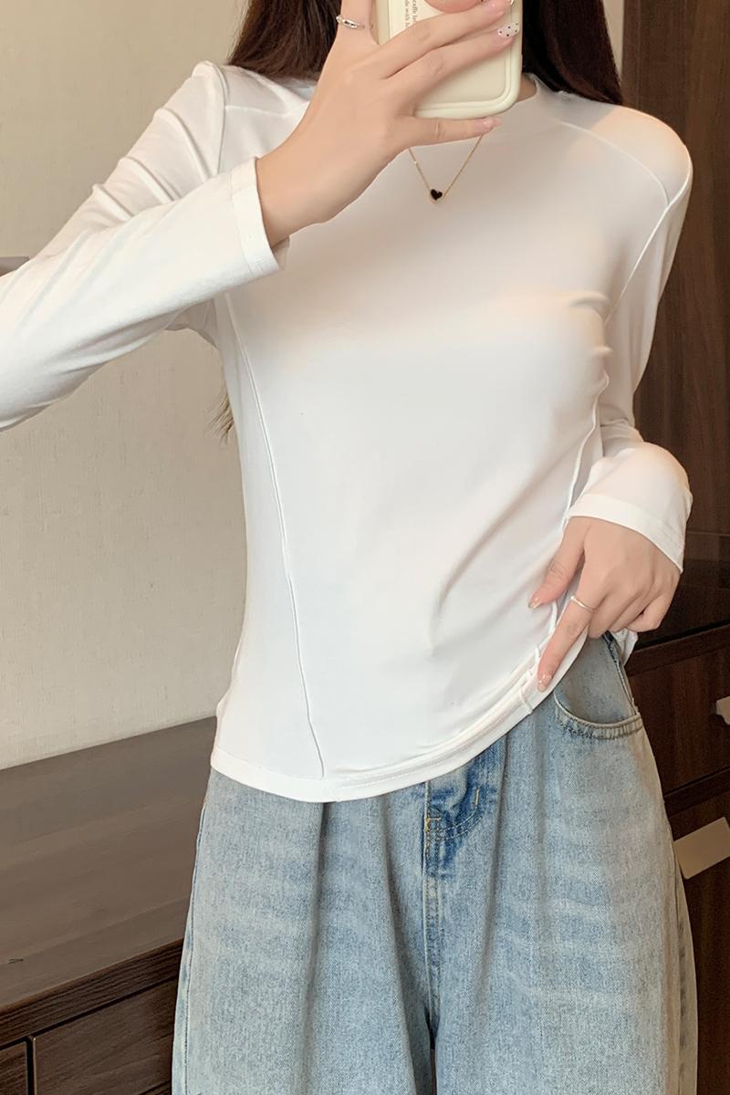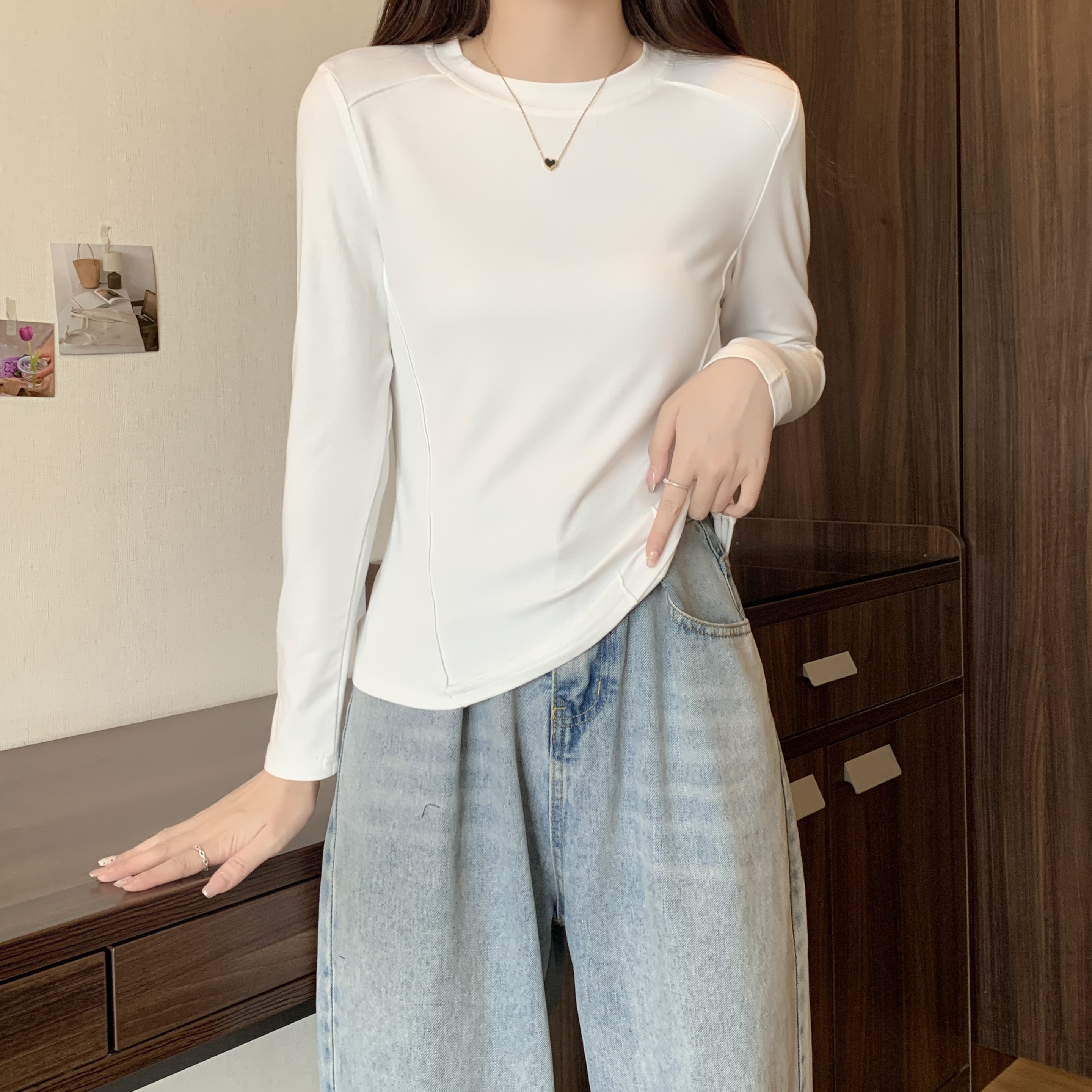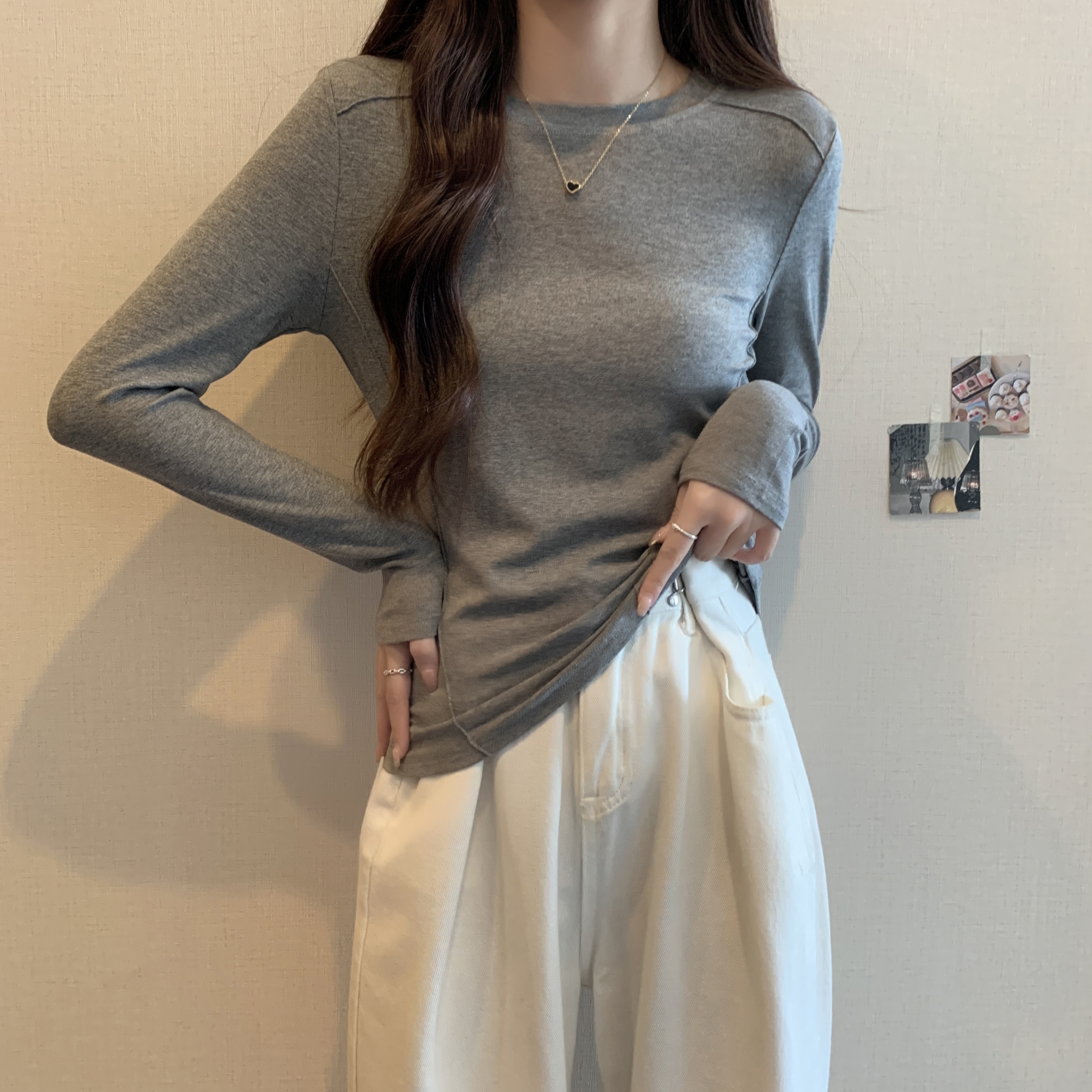 가을과 겨울 스 플라이 싱 디자인을 가진 여성을위한 라운드 넥베이스 셔츠 독특한 최고 슬림 장거리 소매 티셔츠