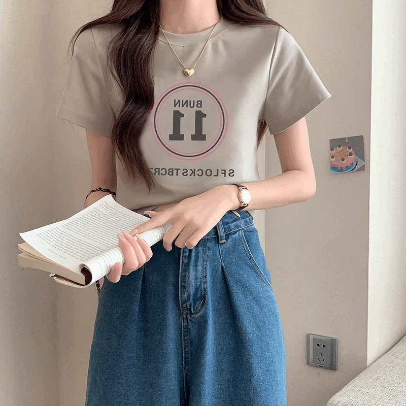인쇄 여름 디자인에서 여성을위한 전면 어깨 단락 티셔츠, 작은 짧은 상위 트렌디