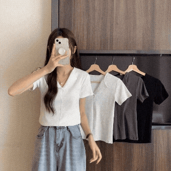 v 넥 티셔츠 단락 독특한 옷깃 여름 정장 여성을위한 새로운 쇄골 슬림 바디 의류