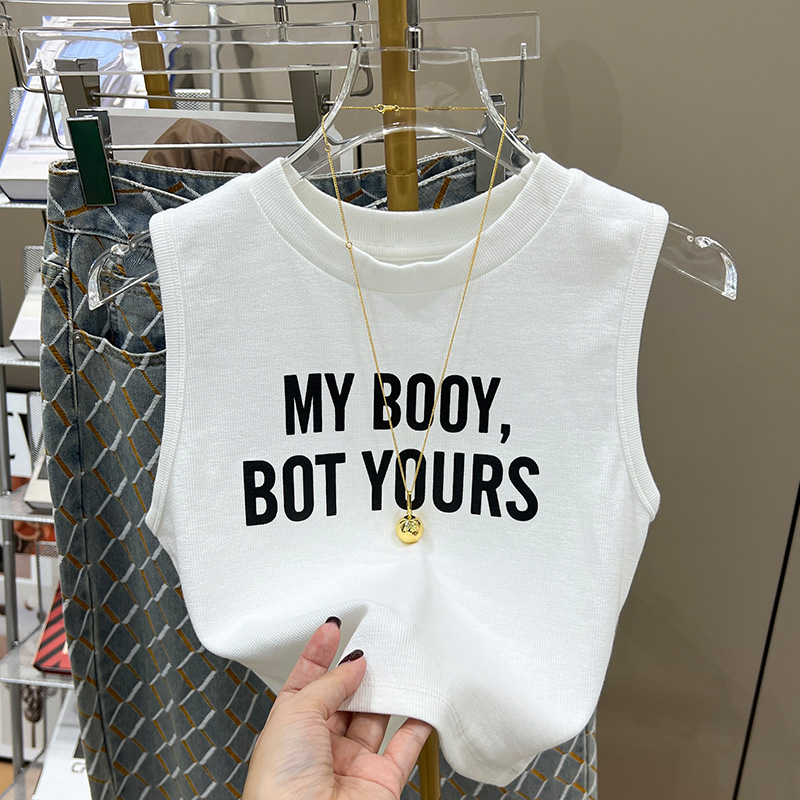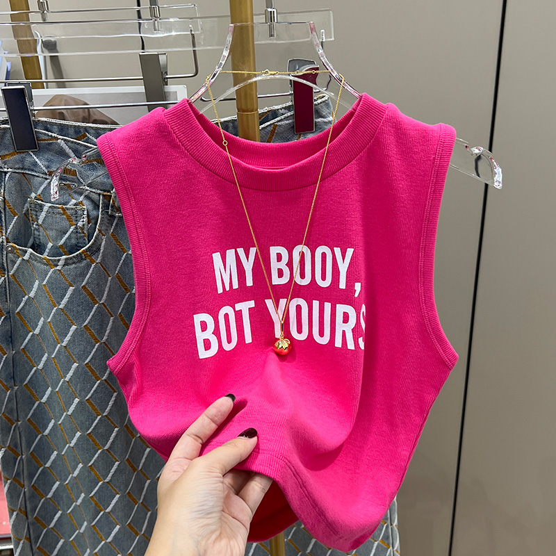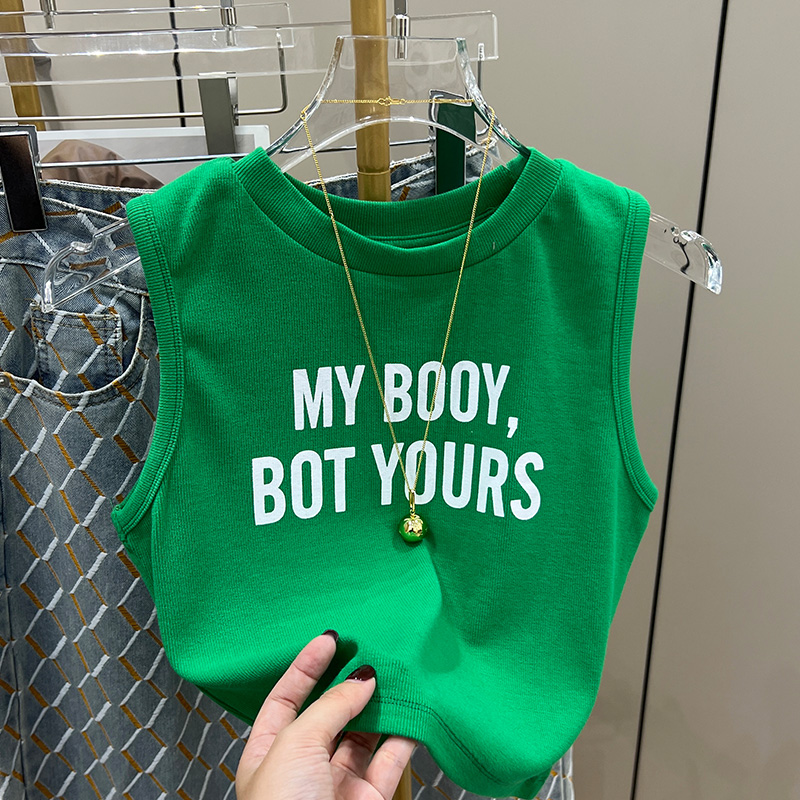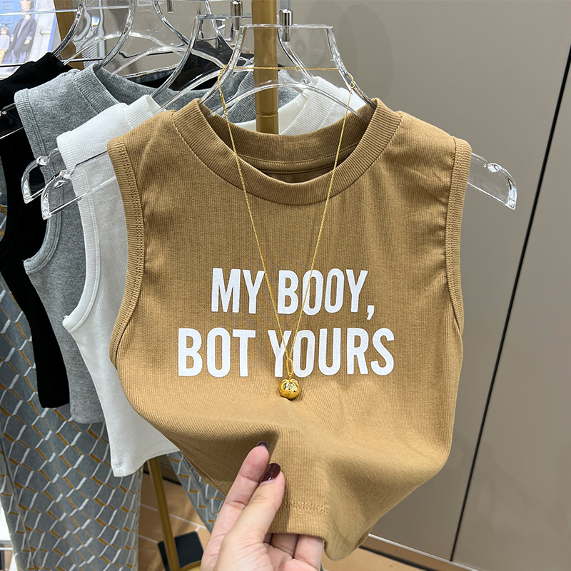 실제 사진과 실제 가격 #EUROPEAN 인쇄 서스펜더 조끼 새로운 여름 라운드 넥 뜨거운 소녀 짧은 탑 트렌디