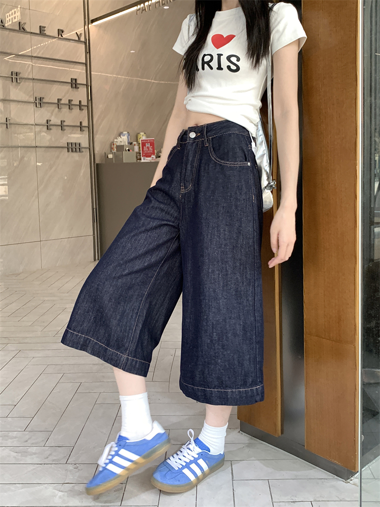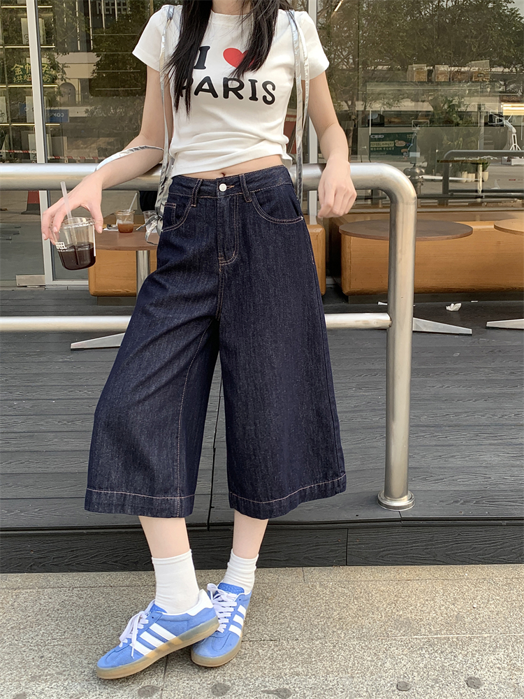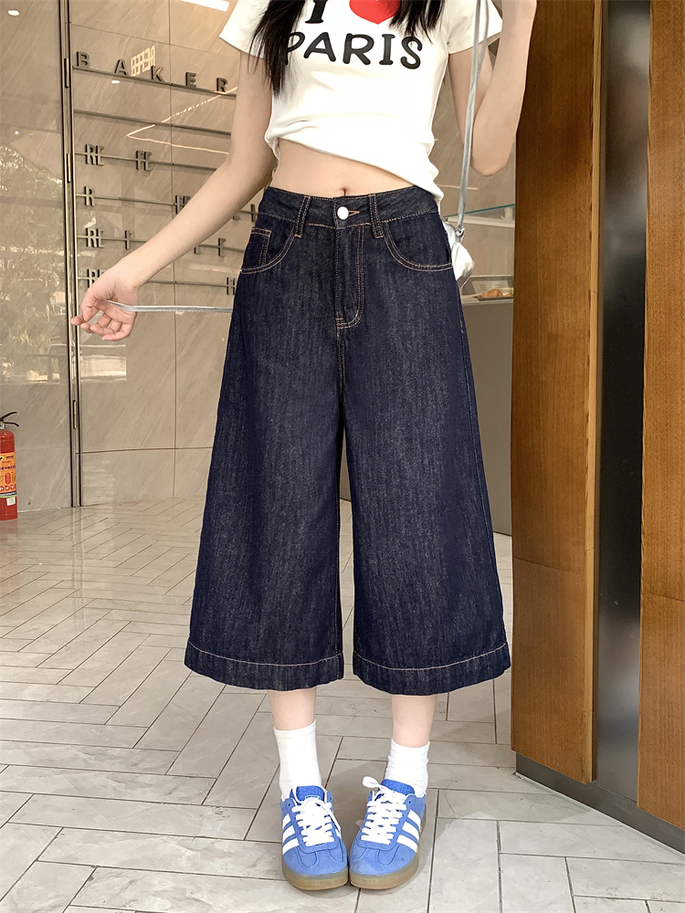 Real Shot, Real Price ~ American High-Waisted Crped 바지, 여성의 새로운 느슨한 스트레이트 넓은 다리 미드 레그 바지를위한 원래 컬러 청바지