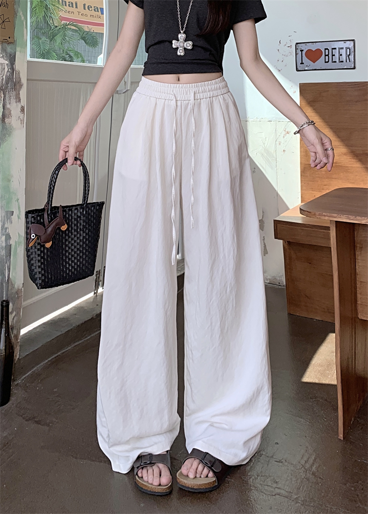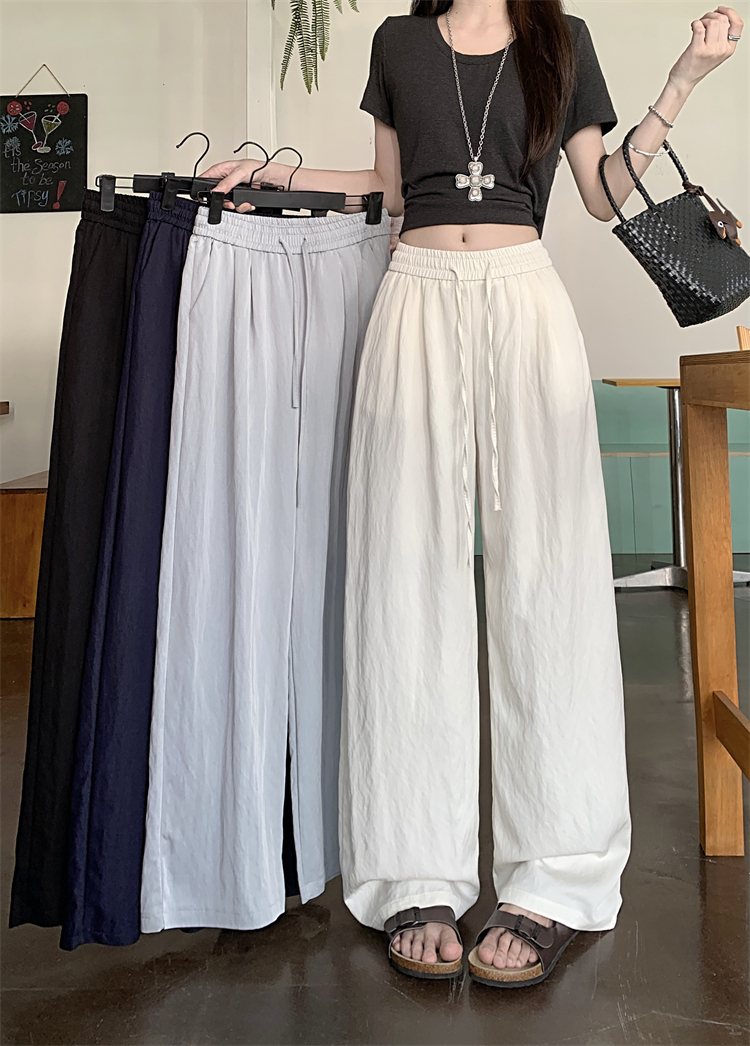 실제 샷, 실제 가격 ~ 얼음 실크면 및 린넨 넓은 다리 바지를위한 여성의 새로운 하이 웨이스트 크기가 작은 다재다능한 스트레이트 레그 캐주얼 바지