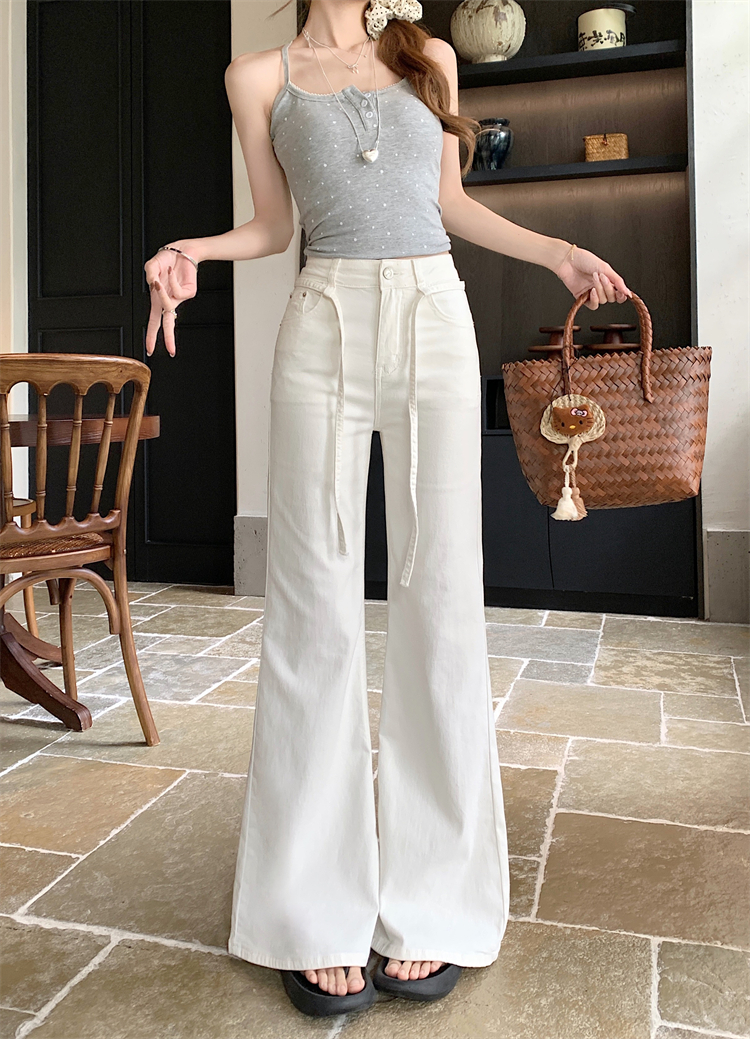 Real Shot, Real Price ~ New High-Waisted 여성 레트로 탄성 슬리밍 직선 바지를위한 약간 플레어 디자인 청바지