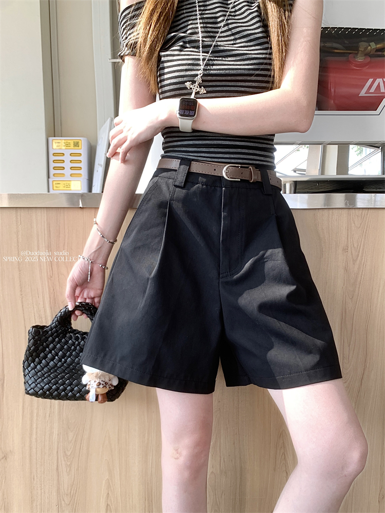 실제 샷, 실제 가격 ~ 카키는 여름에 여성을위한 반바지 새로운 느슨한 넓은 레그 캐주얼 하이 웨이스트 5 포인트 정장 바지