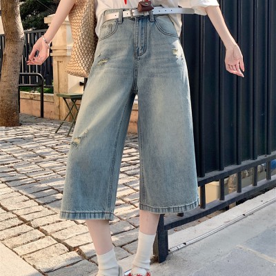 바지 중간 크기 바지를위한 넓은 다리 청바지