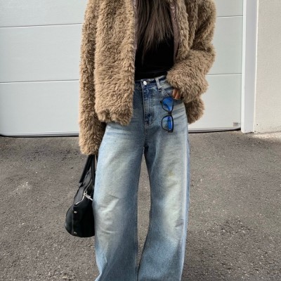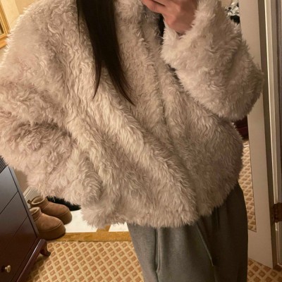 선적 chic 한국 스타일 모피 보온 플러스 면 두꺼운 지퍼 재킷