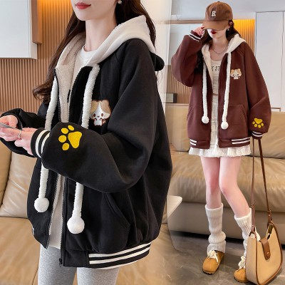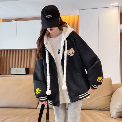 털이 있고 두꺼운 루즈핏 종류 청소년 재킷 2025 새로운 자수 패치워크 색상 캐주얼 재킷 초기 고등학생 맨위