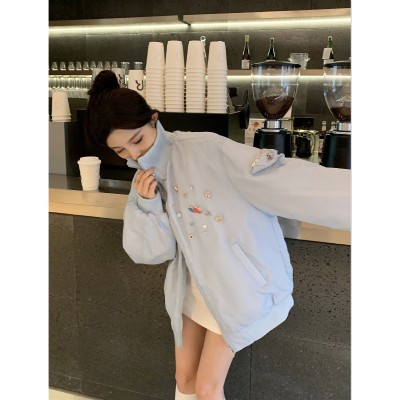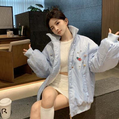 실제 촬영 고급 센스 무거운 작업 다이아몬드 자수 스탠딩 칼라 목화 의류 외투 겨울 추세 한국어 버전 느슨한 코튼 코트