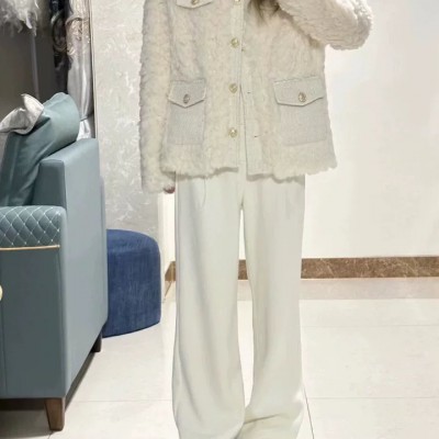 모피 작은 샤넬 스타일 여성 코트 겨울 새로운 고급 센스 코코아 모방 토끼털 코트 두꺼운 라운드 넥 인터넷 유명인 면 의류