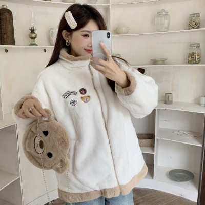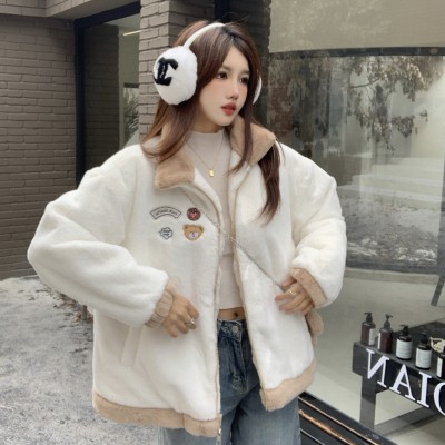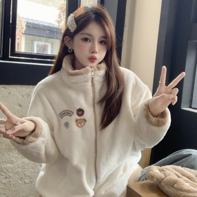 실사 플러스 면 플리스 두꺼움 여성 코트 가을 겨울 한국 스타일 소금 부서 털이 많은 겉옷 중학교 고등학생 귀여운