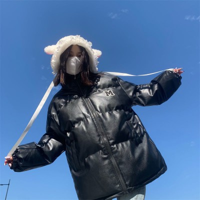 아메리칸 거리 PU 가죽 면 의류 여성 가을 겨울철 두꺼운 센스 작은 대중 목화 진딧물 패딩 재킷 여성 의류 오토바이 재킷 트렌드