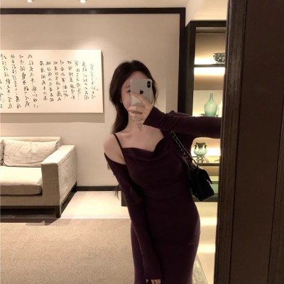 가을 새로운 순수한 욕망 느긋한 바람 흔들다 칼라 슬립 드레스 패션 품격 슬림해 보이는 긴팔 오픈 가디건 투피스 세트