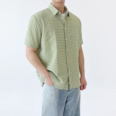 데일리 남자 오버핏 반팔 체크 남방 셔츠 남성 반팔 티셔츠