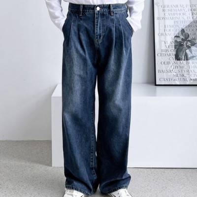 투턱 남자 바지 와이드 데님 팬츠 남성 중청 바지