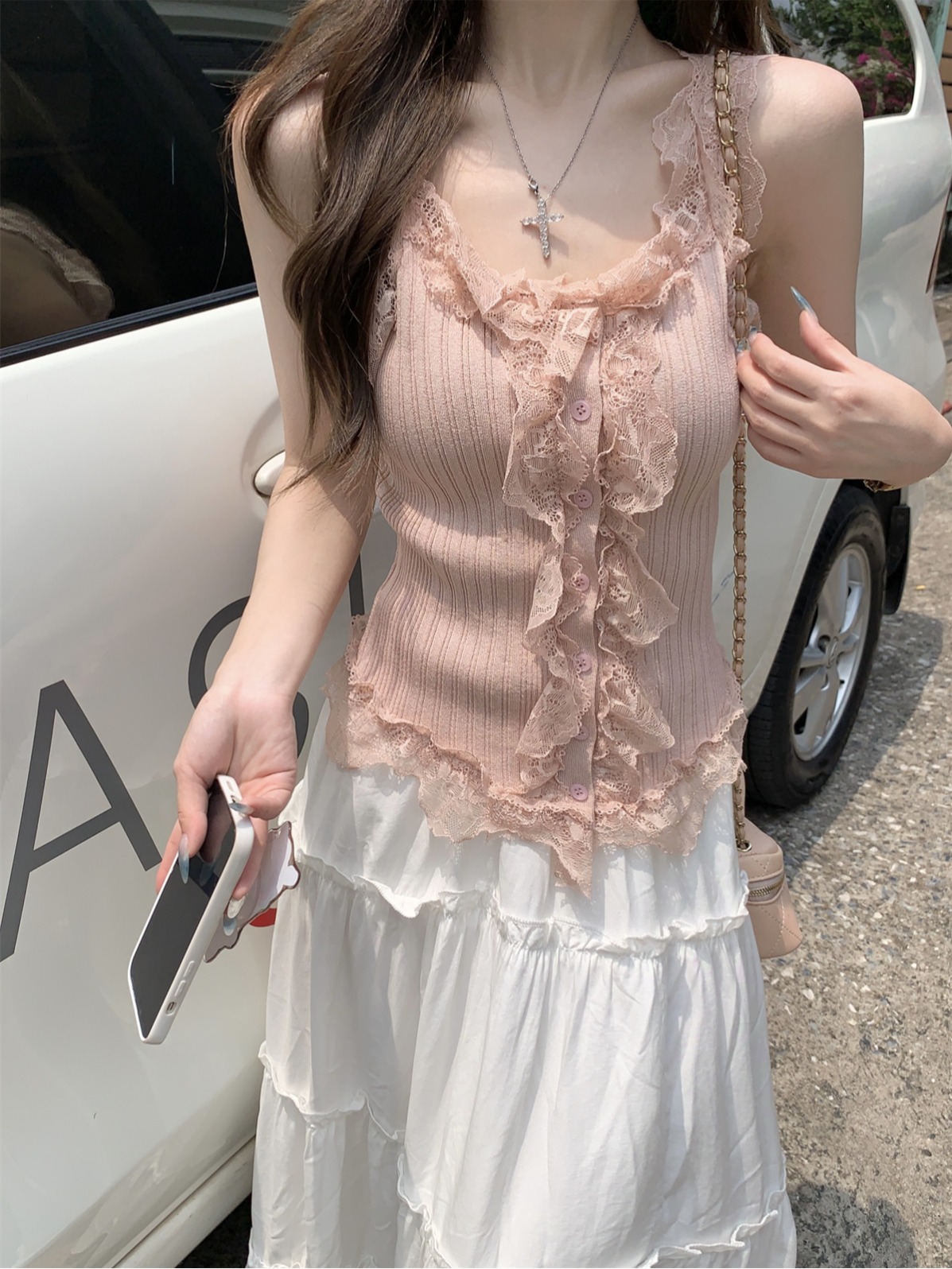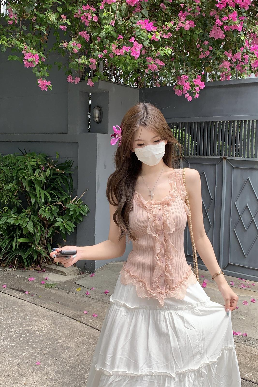 봄 여름 한국어 버전 다목적 대조적 인 대조적 인 컬러 가짜 두 피스 독특한 디자인 앤디 벨벳 니트 짧은 소매 탑