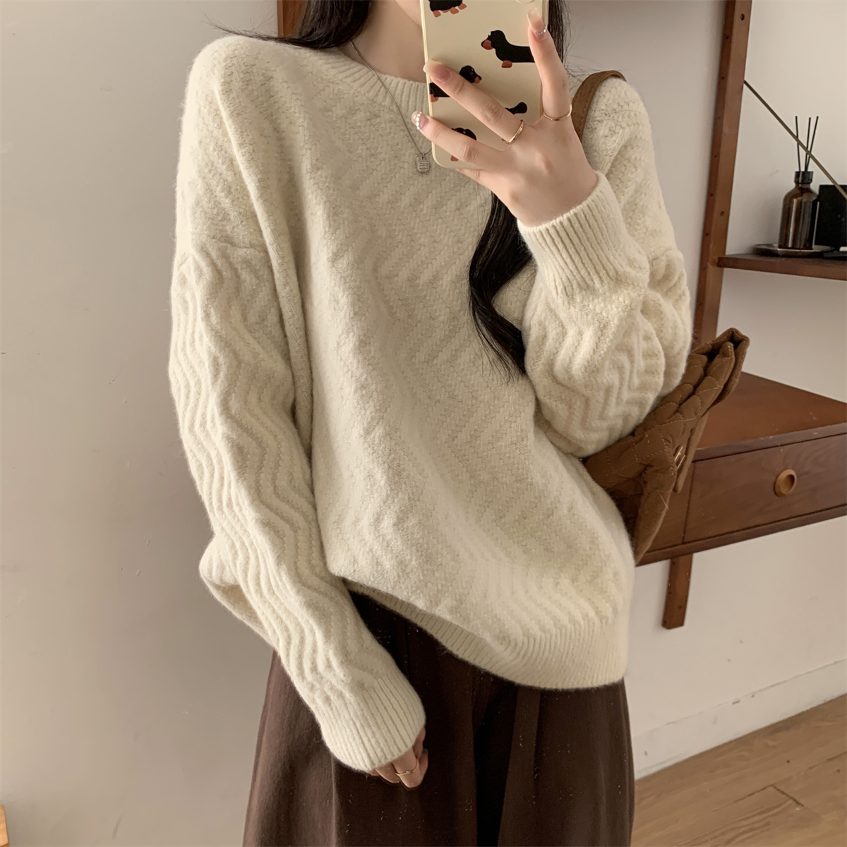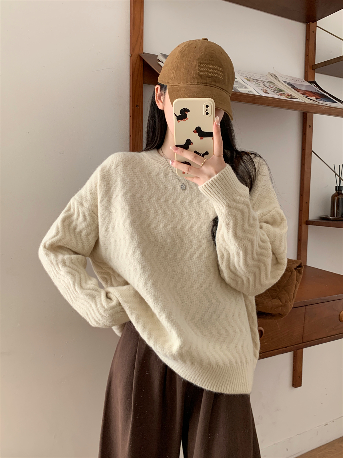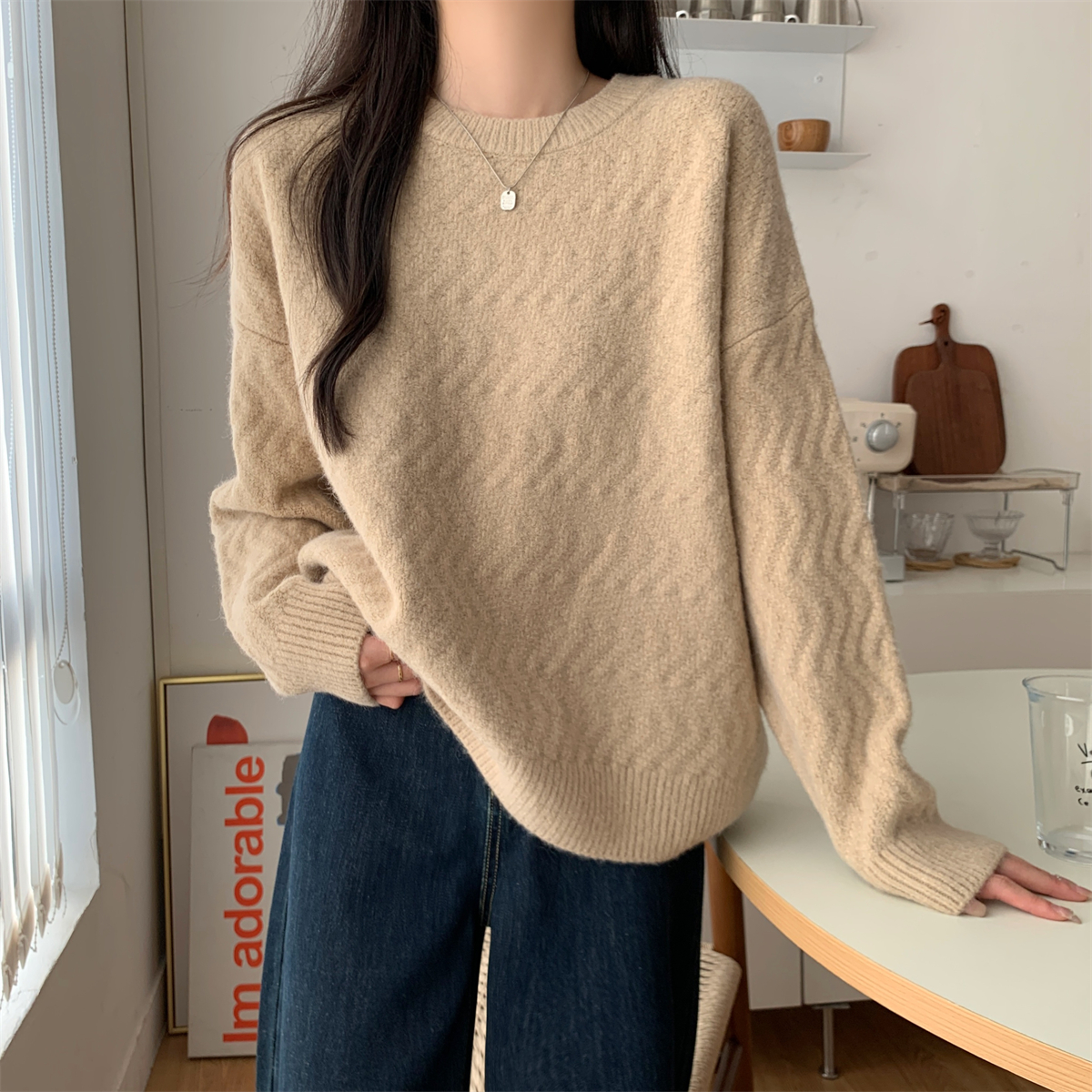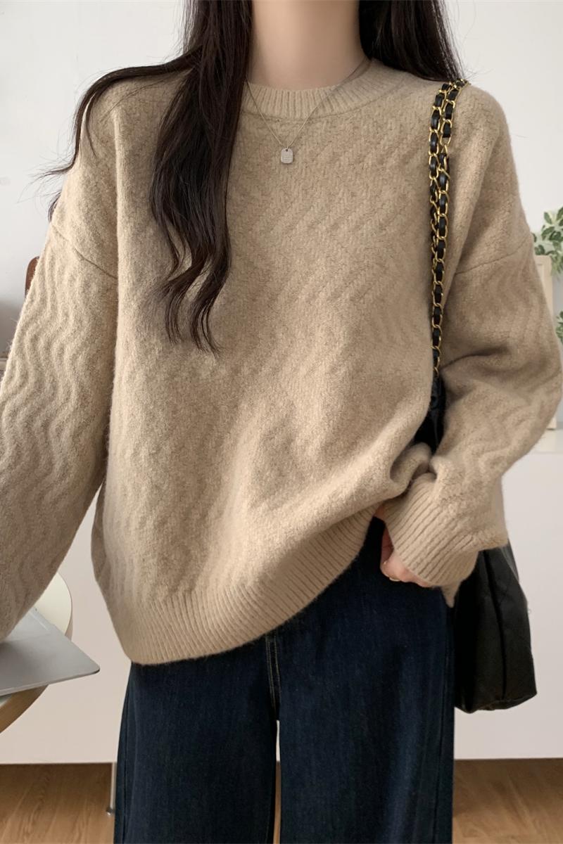 반 높이의 목 기질 퍼프 슬리브의 한국어 버전 단색 내부와 앤디 벨벳 니트베이스 스웨터