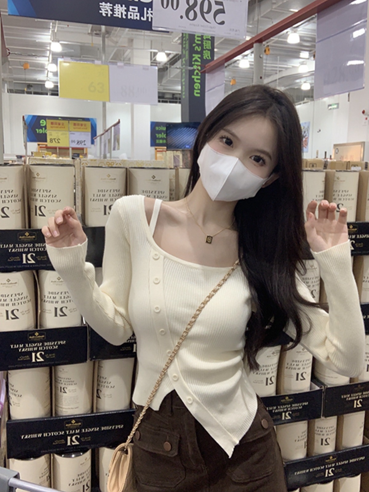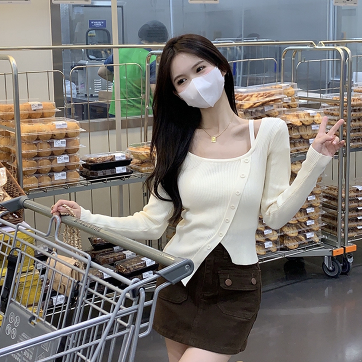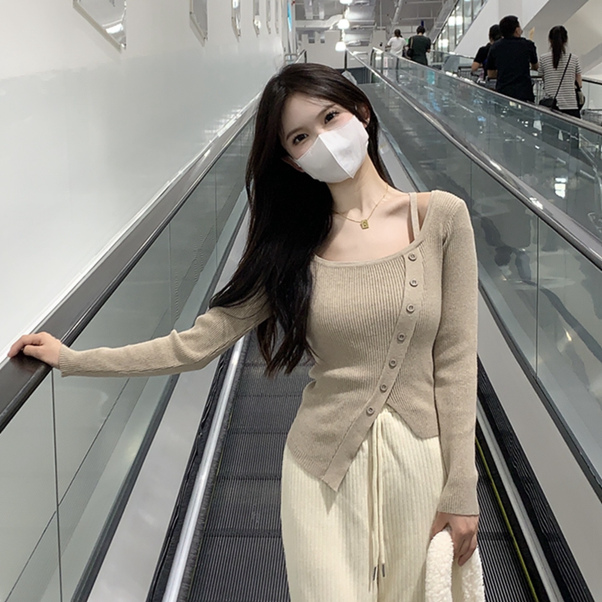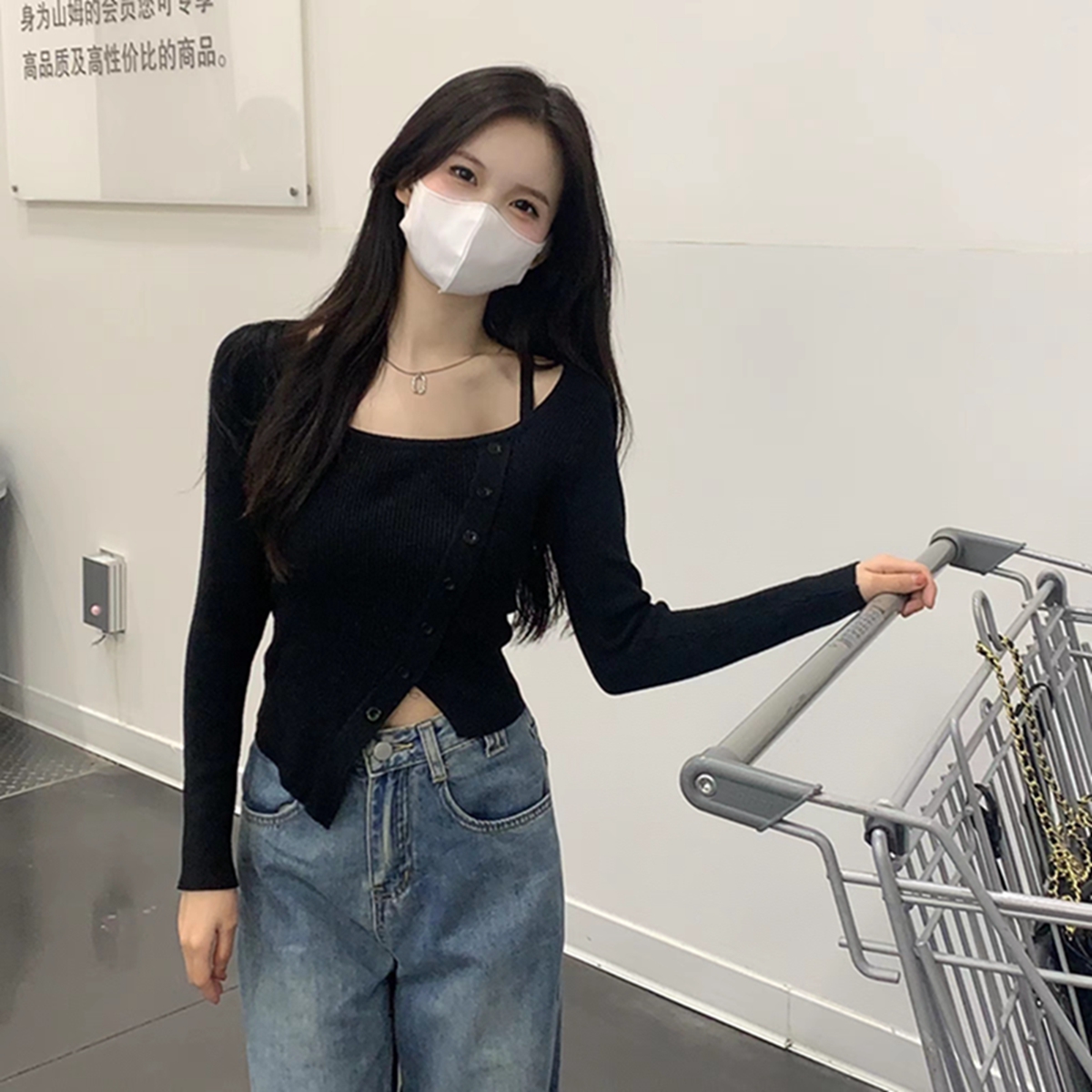 한국 스타일 다목적 슬림 한 반 높이 뼈 뼈 디자인 느낌 니트베이스 여성 스웨터