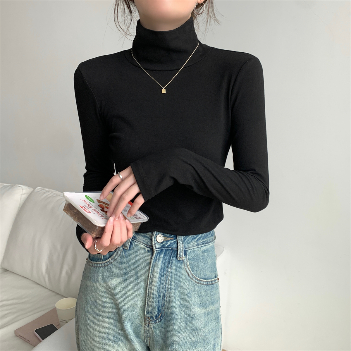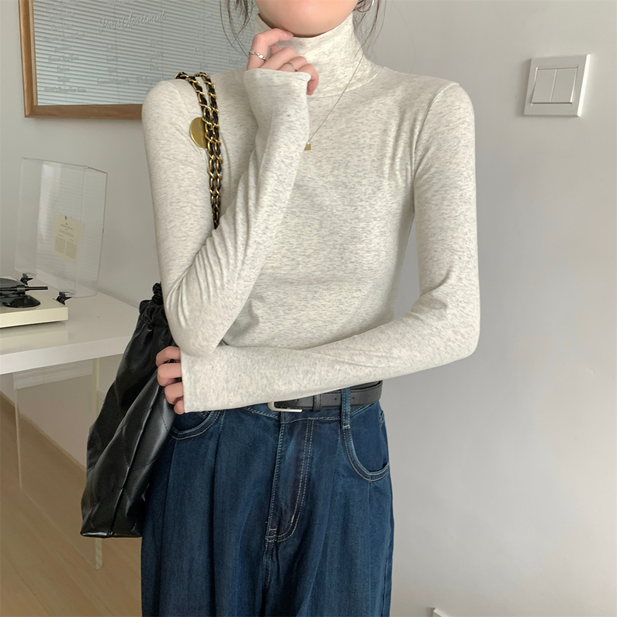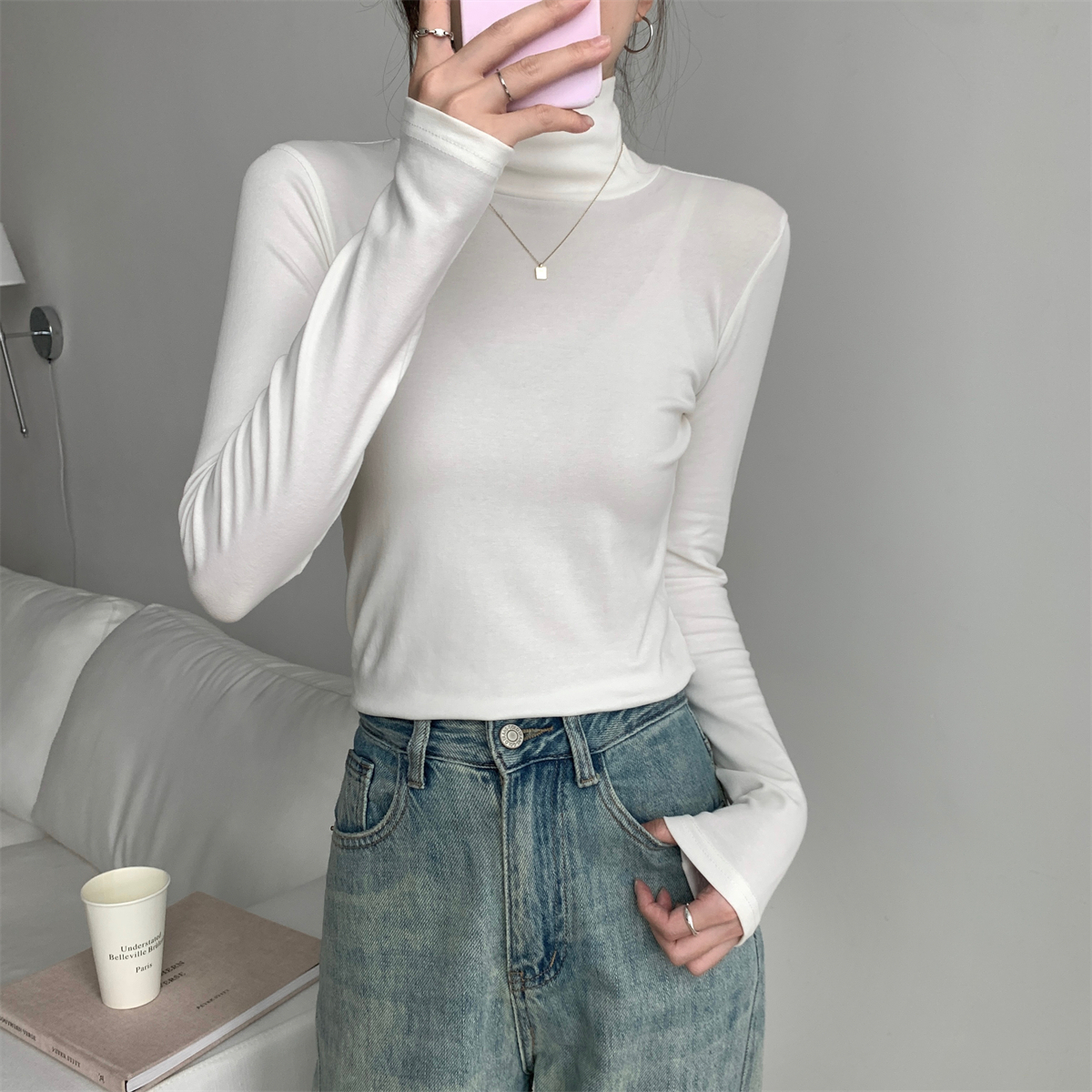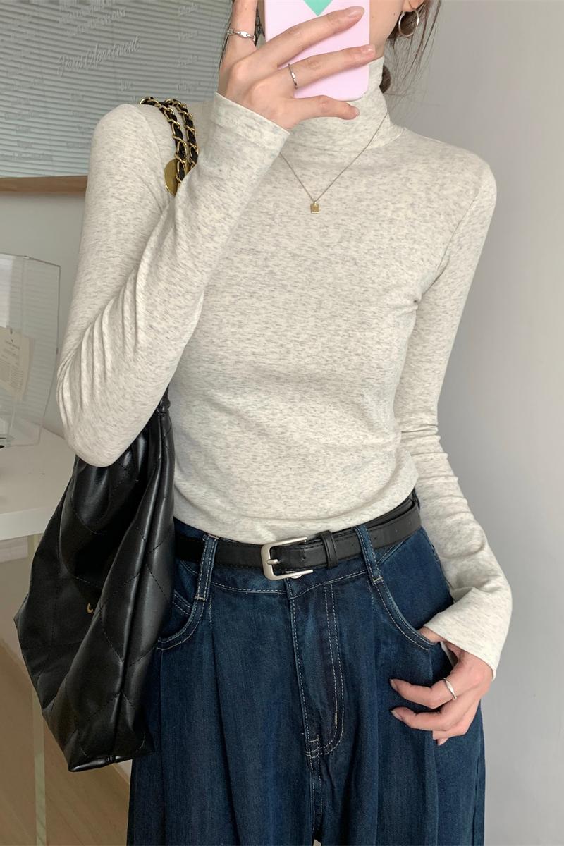 슬림 반 높이 목 퍼프 슬리브 디자인의 한국어 버전 및 앤디 벨벳 니트베이스 여성 스웨터