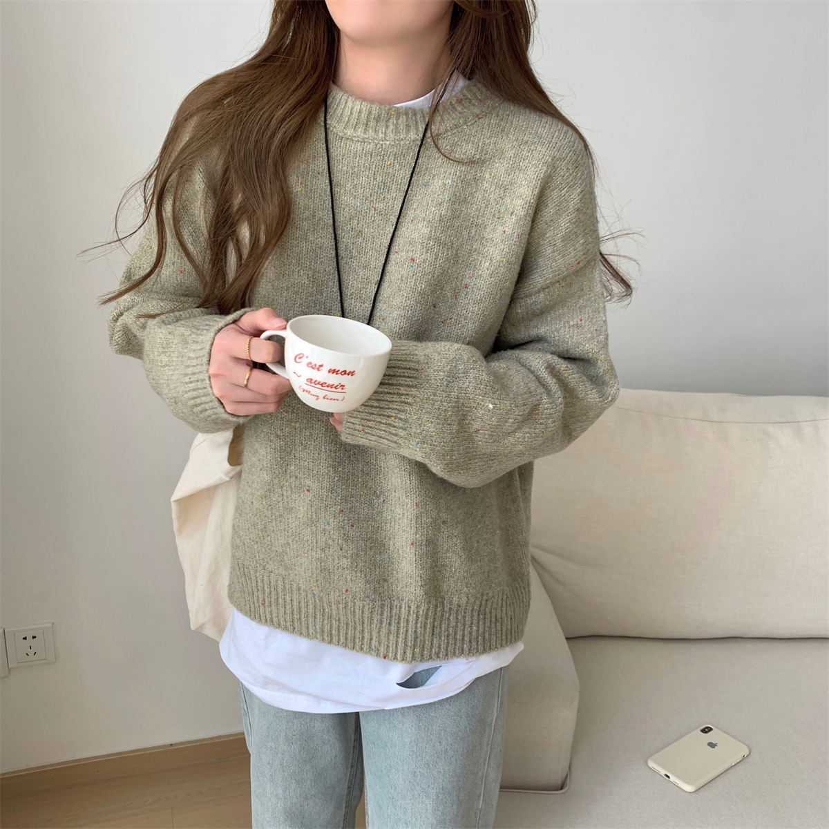 실제 사진 및 가을 및 겨울 대조 컬러 가짜 2 피스 하프 오픈 칼라 디자인 및 기질 니트베이스 스웨터 탑