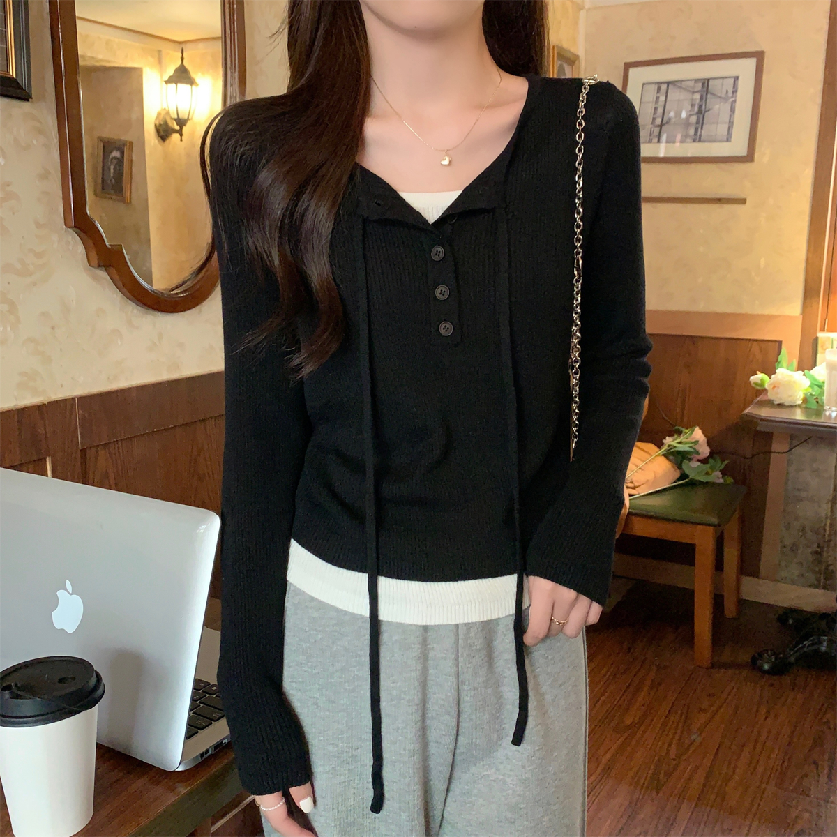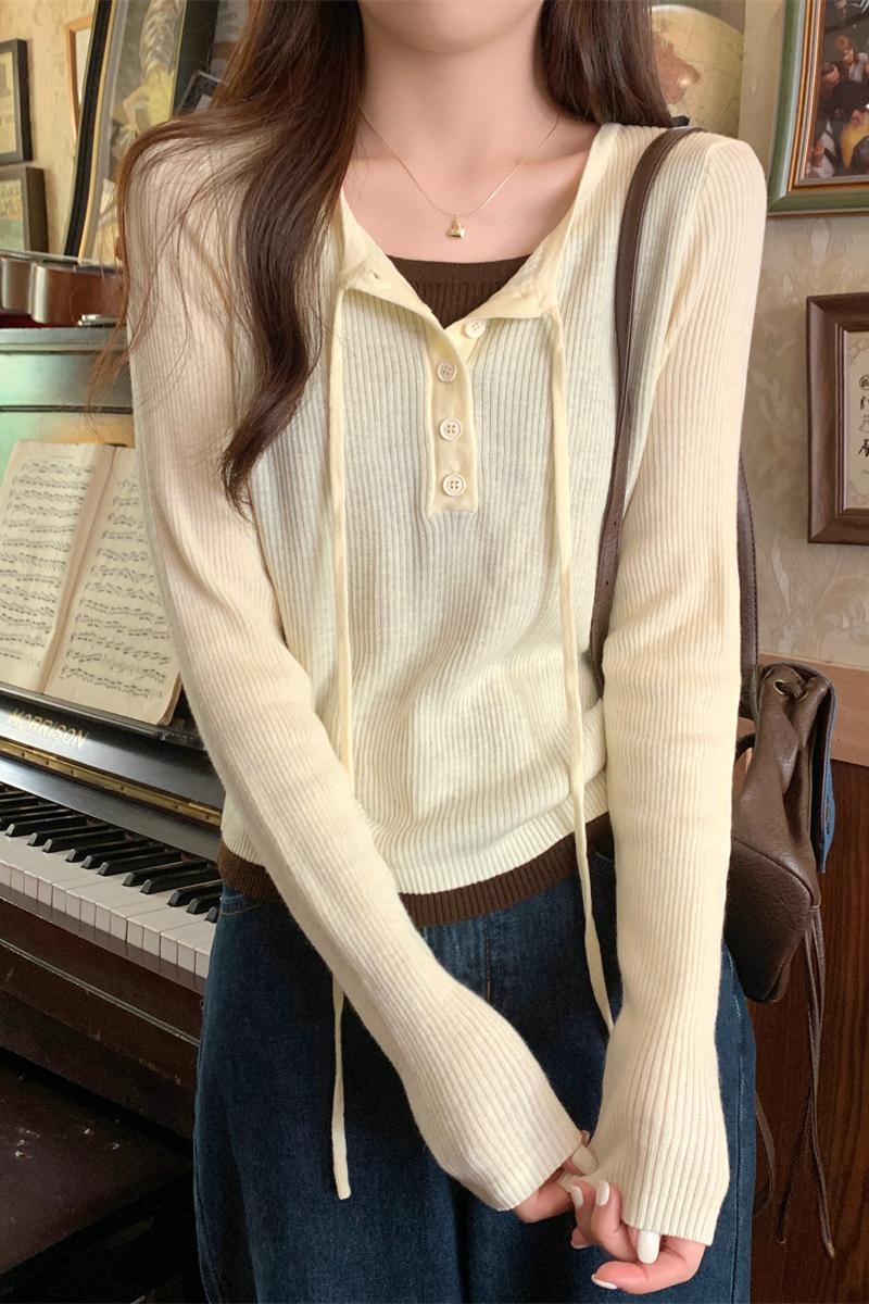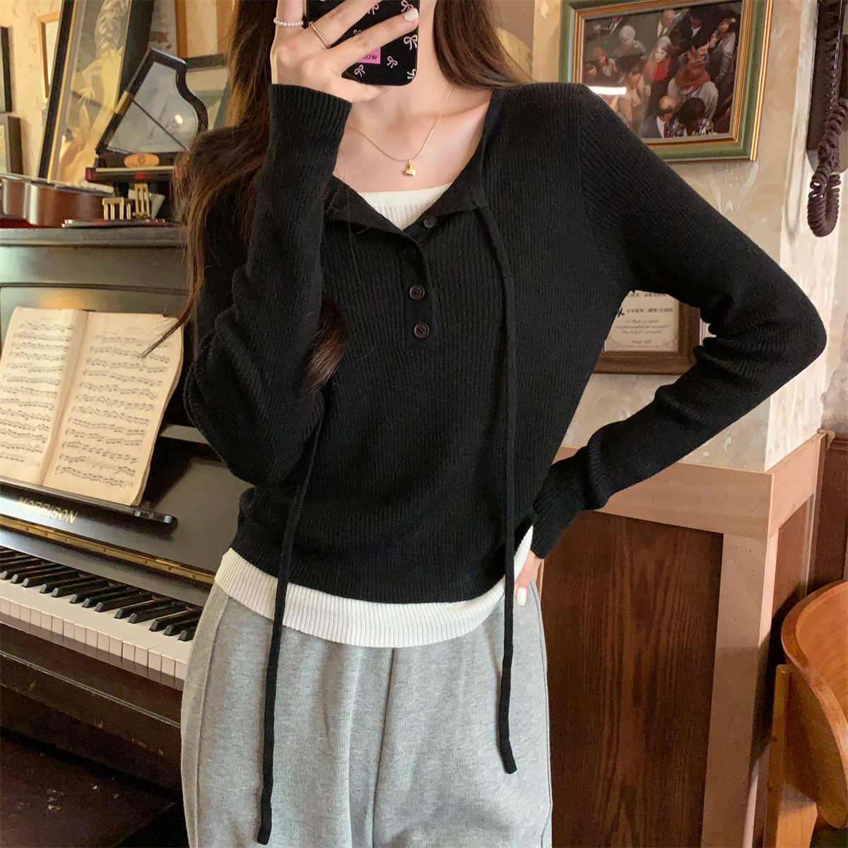실제 사진 및 한국어 버전 느슨한 단색 소프트 글 루틴 버튼 디자인 감각 북극 벨벳 니트 풀오버 여성 스웨터