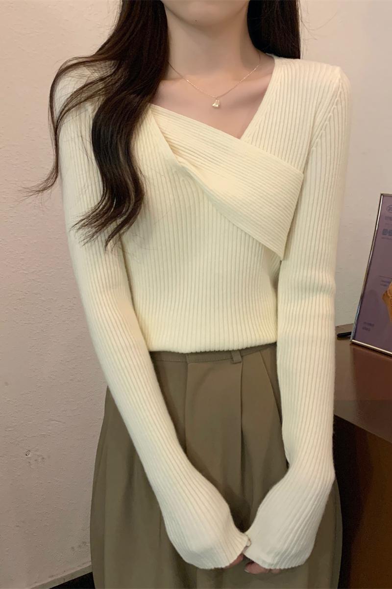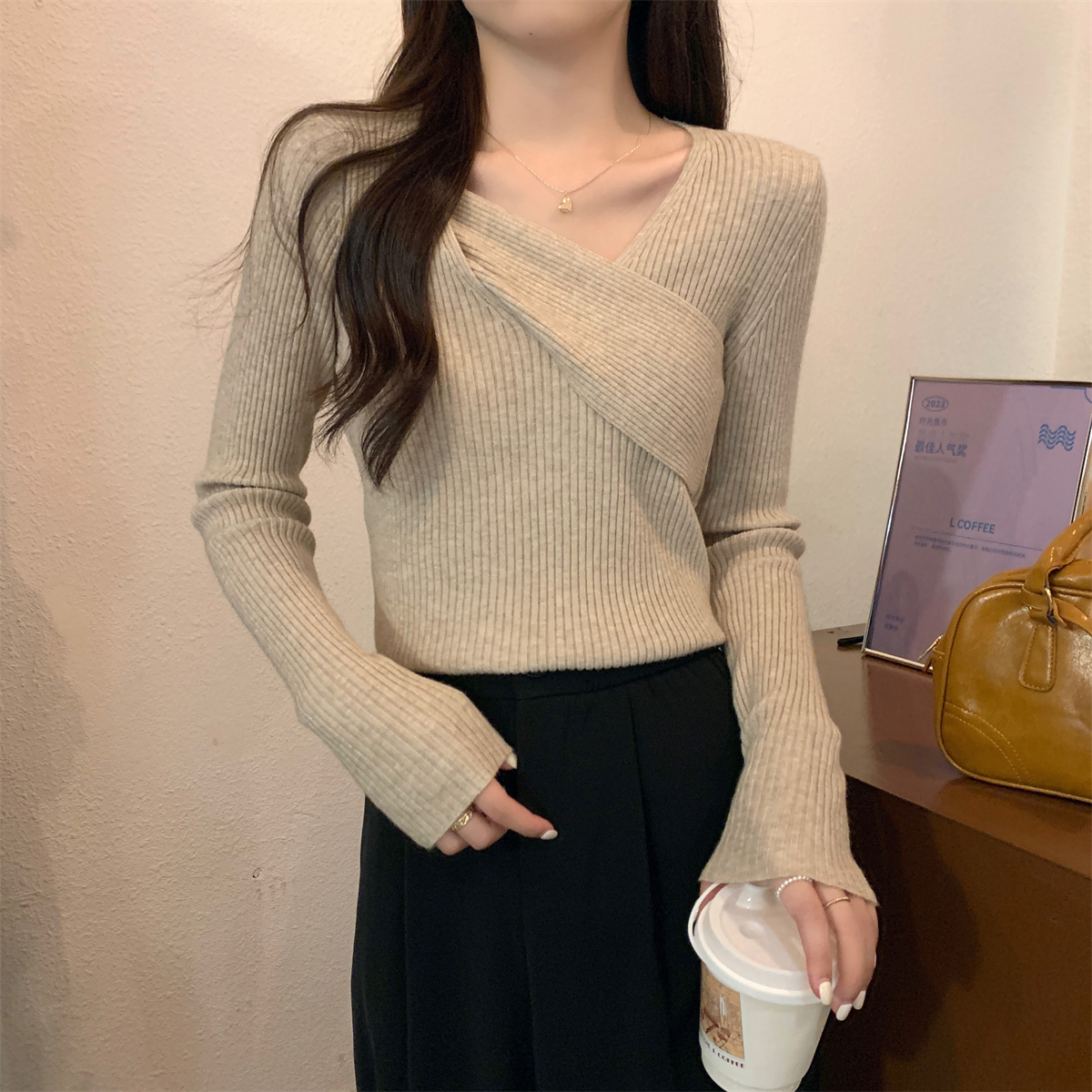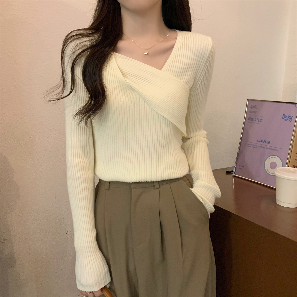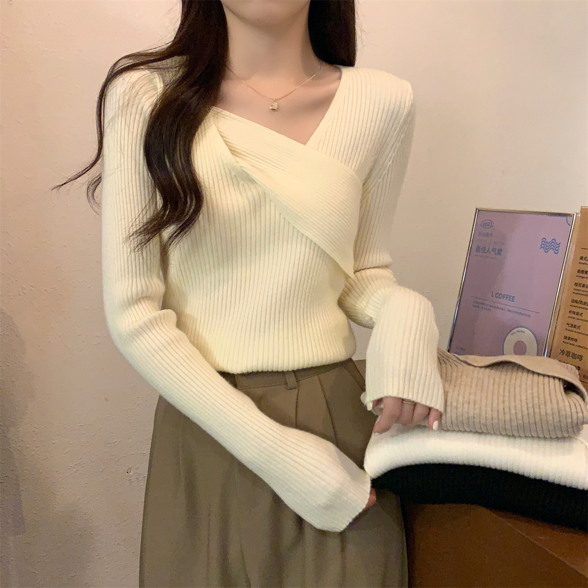 실제 사진 가을 겨울 한국 스타일 폴로 칼라 세련된 버튼 디자인 내부 니트베이스 여성 스웨터