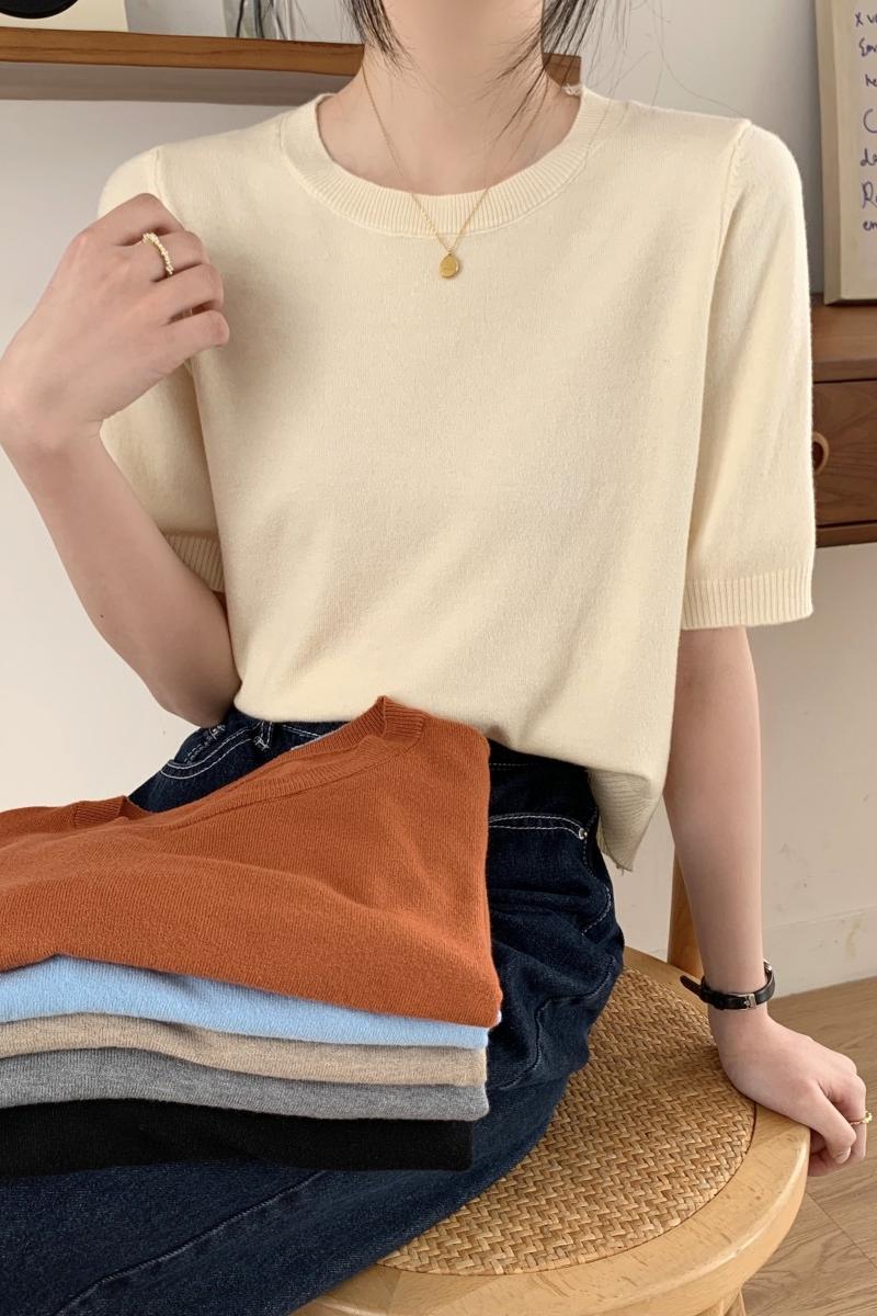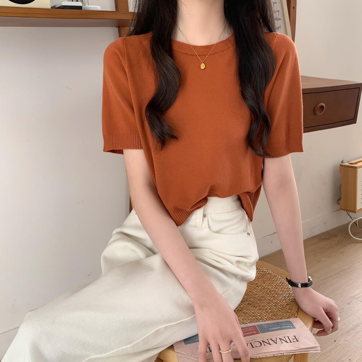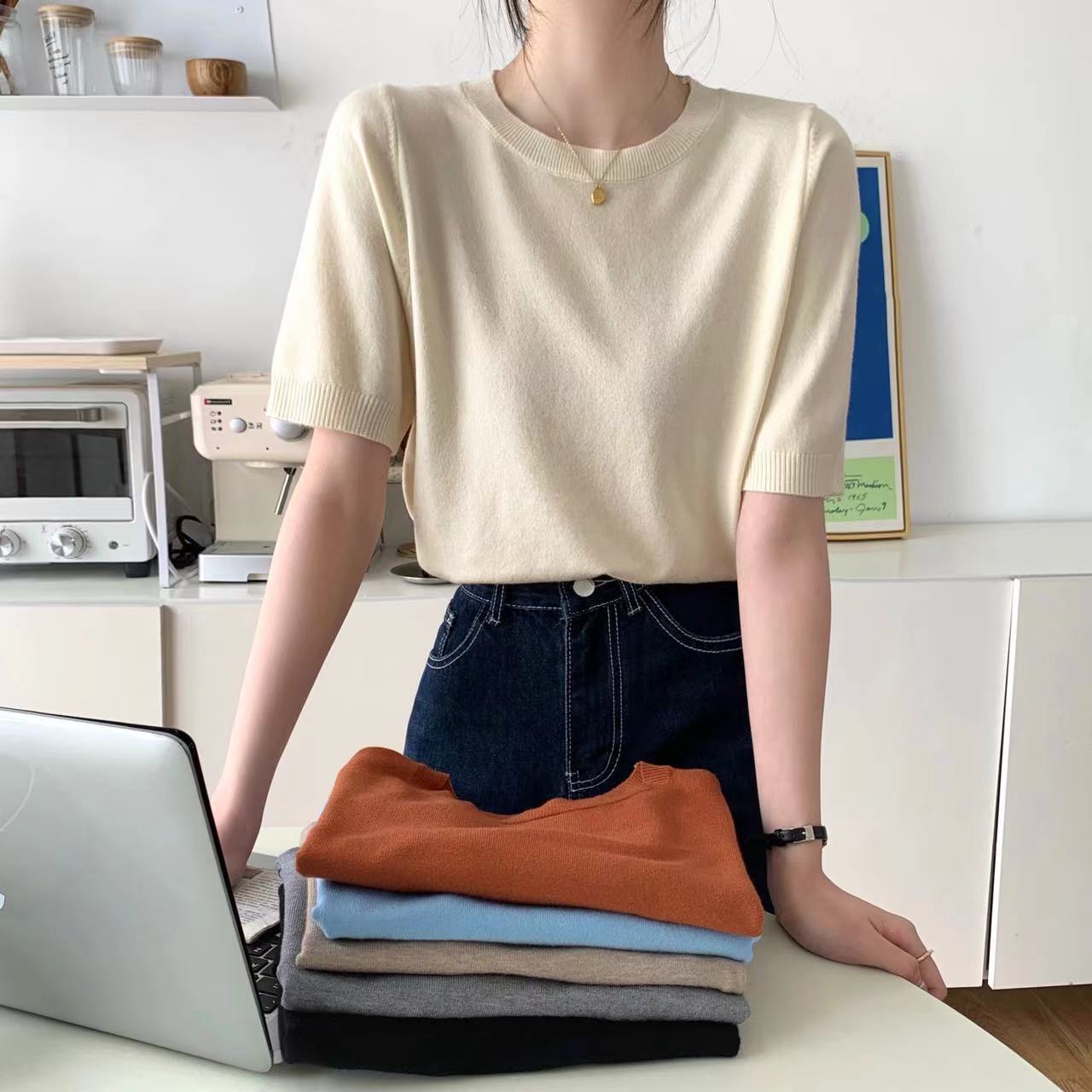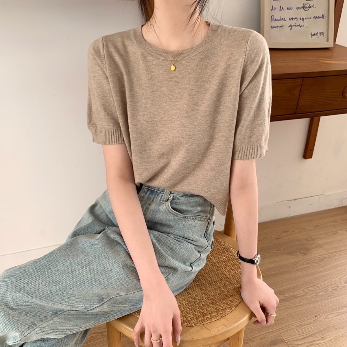 봄 여름 한국 스타일 슬림 기질 스퀘어 칼라 주름 디자인 단락 순수면 티셔츠 여자 탑