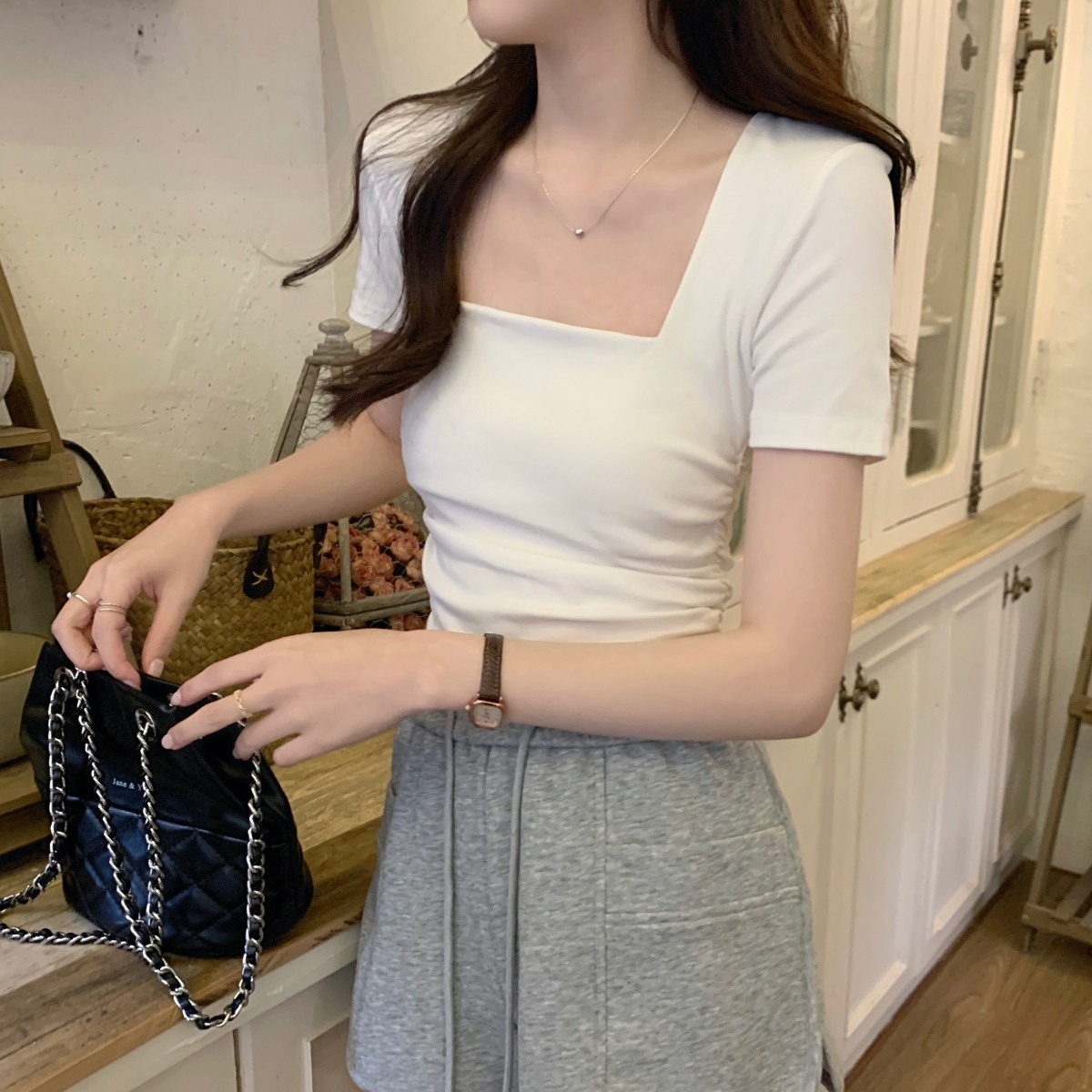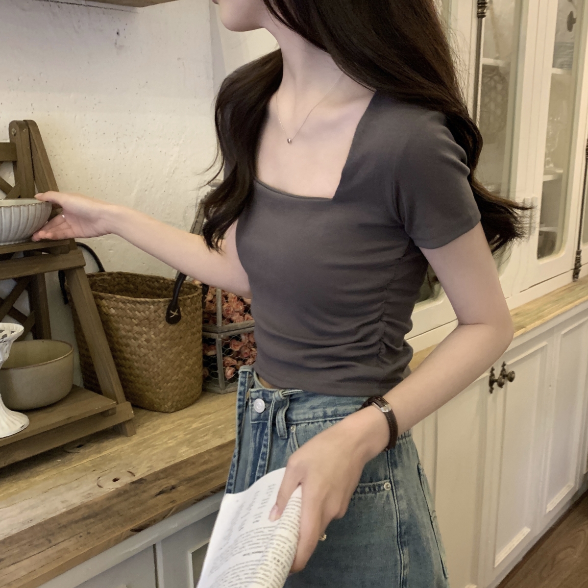 V넥 플러스 벨벳 긴팔 티셔츠 한국 버전 두꺼운 이너 베이스 탑