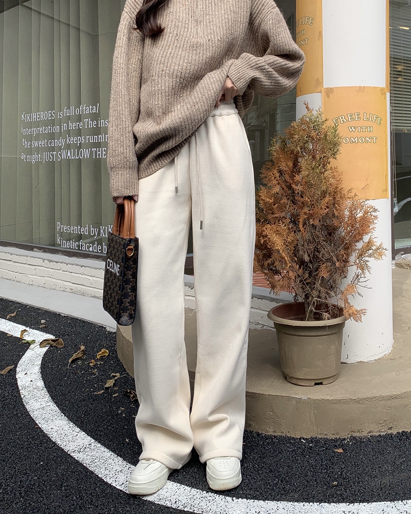 허리가 많은 여성을위한 새로운 첸닐 넓은 다리 바지의 사진 캐주얼 플러스 벨벳 두껍게 나는 따뜻한 스트레이트 스포츠 바지 트렌디