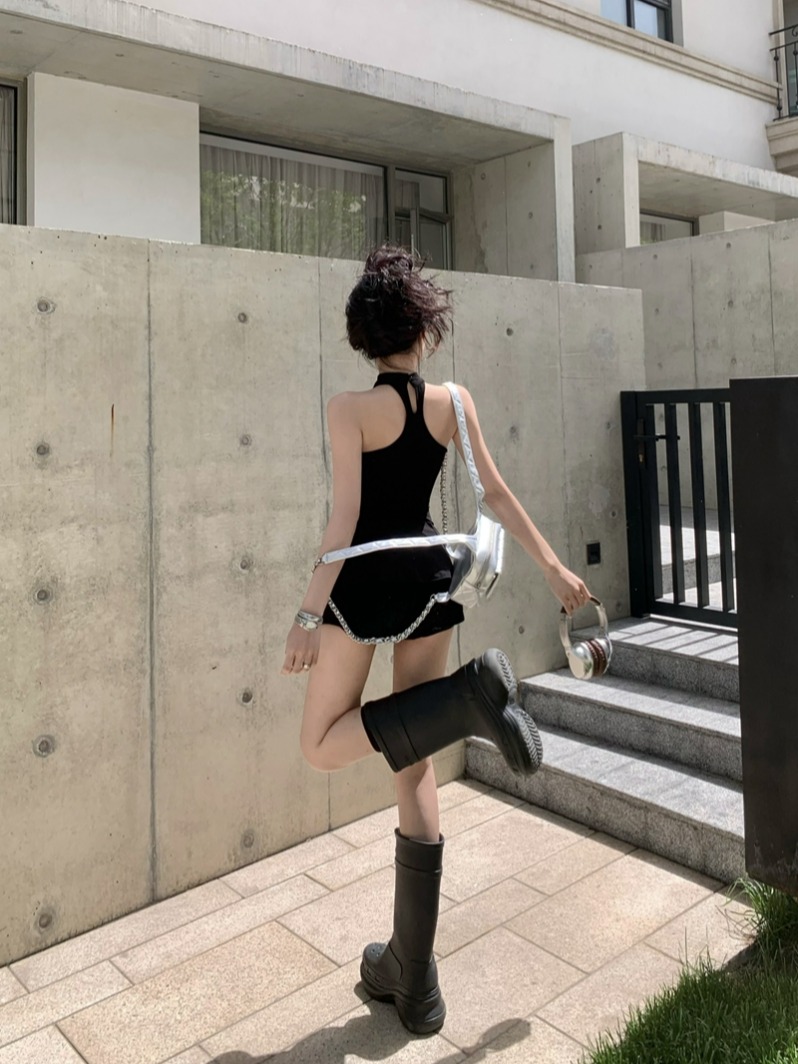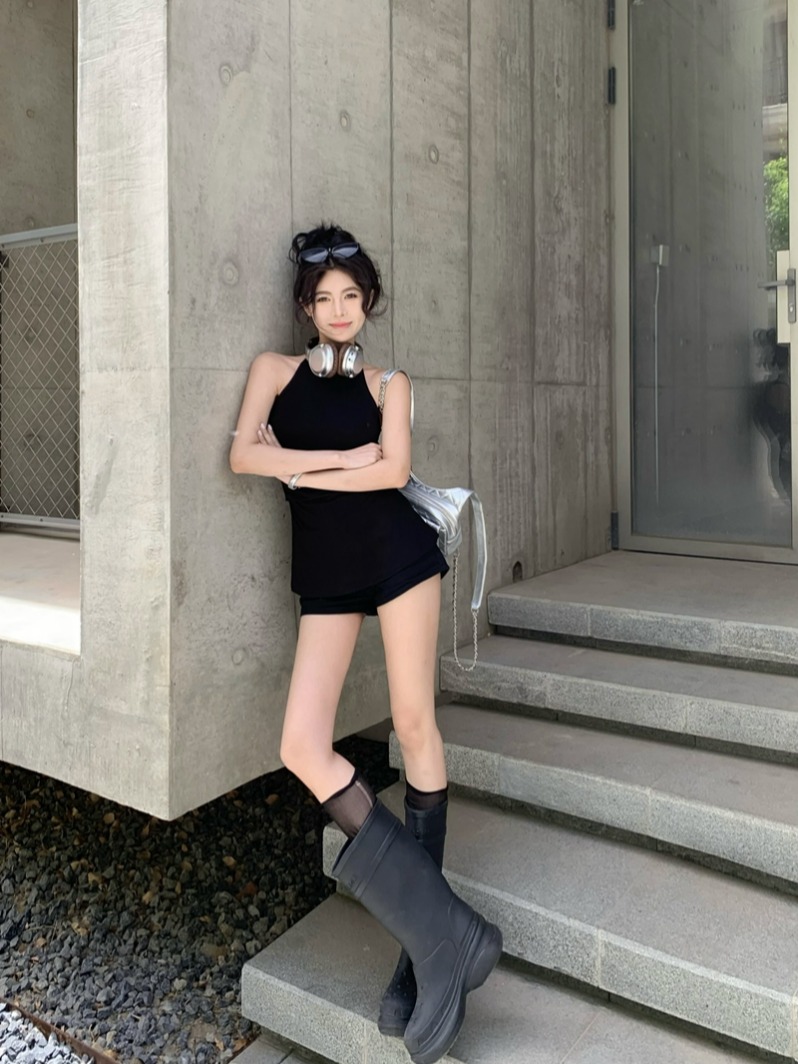 실제 가격 여름 새로운 핫 걸 스타일 블랙 겉옷 halter vest 여자 소매 소매 섹시한 백리스 탑