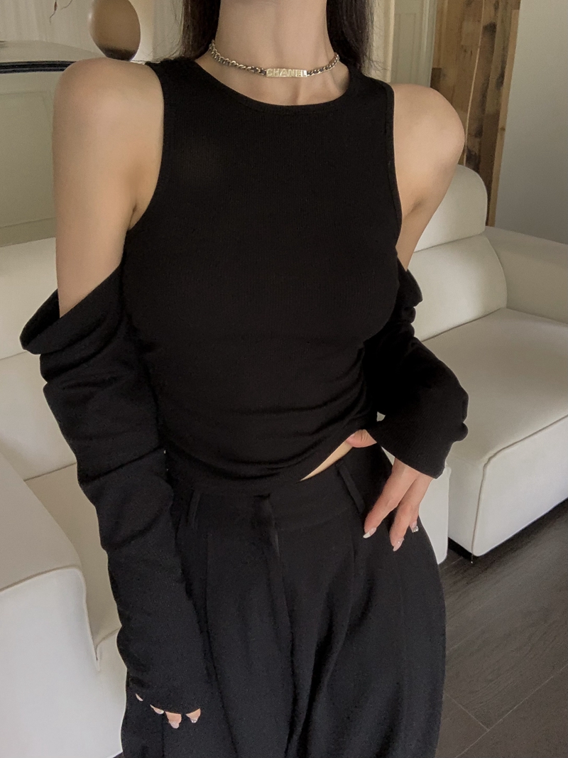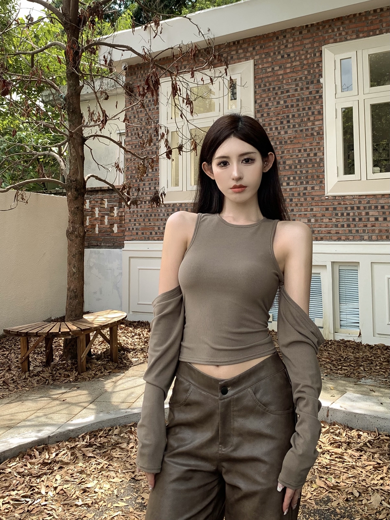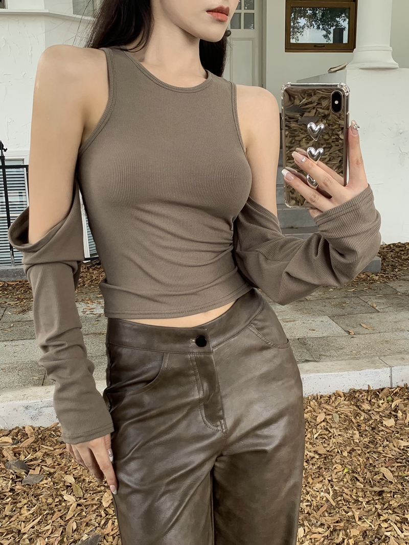 실제 가격 봄 핫 걸 스타일 블랙 오프 숄더 슬림 핏 탄성 긴팔베이스 셔츠 세련된 내부 티셔츠