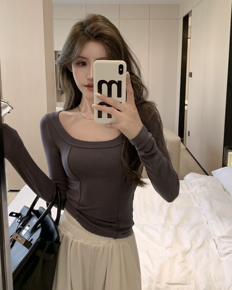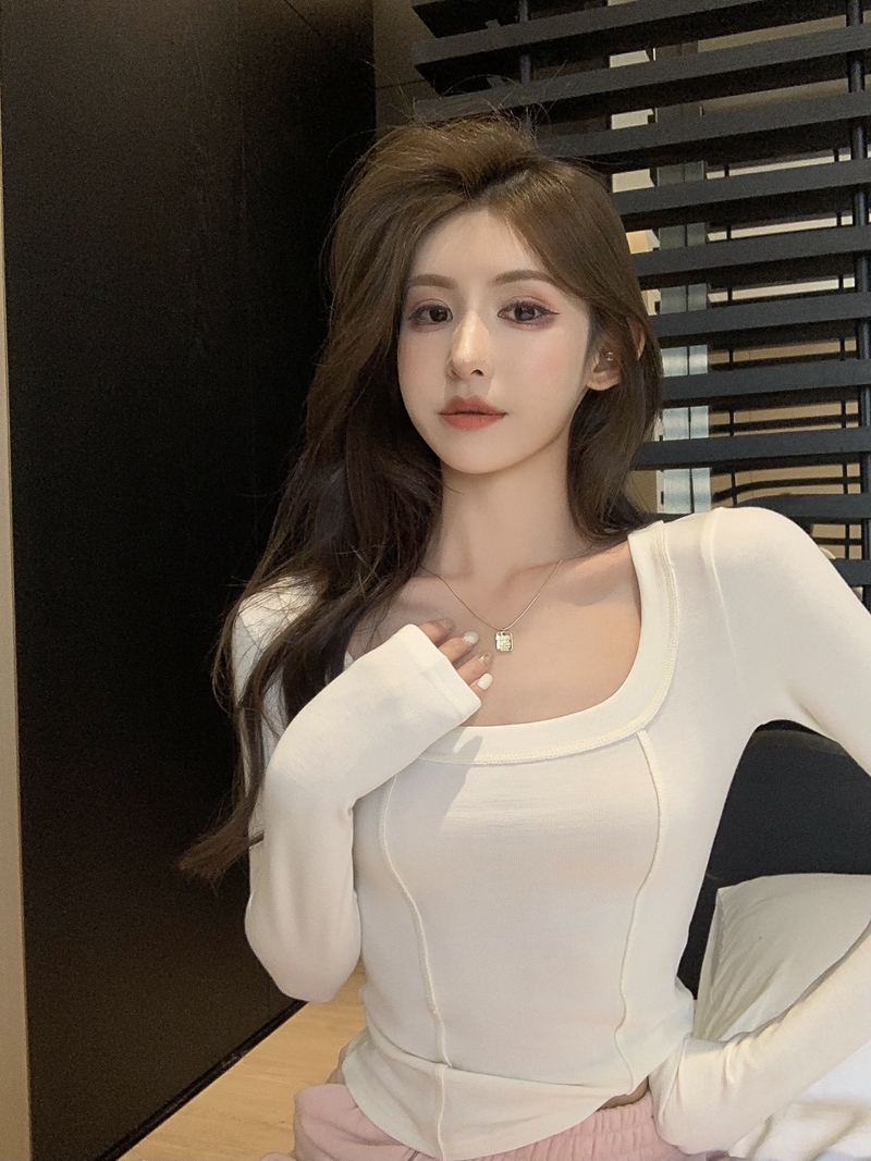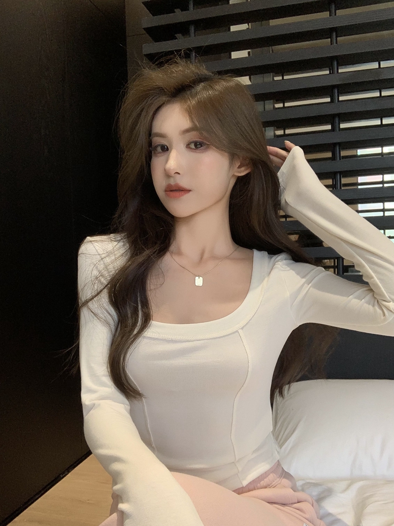 실제 가을과 겨울 Meiyabi Modal 하이 탄성 슬림 안쪽 셔츠 안쪽 셔츠 insu 목 짧은 긴팔 티셔츠