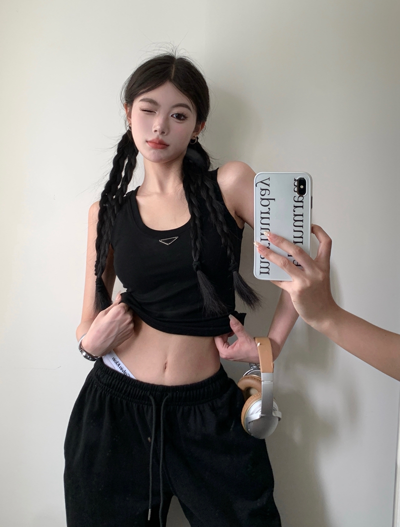 실제 여름 새로운 미니멀리스트 고급 스타일의 삼각형 브랜드 브랜드 보조 유방 보호 방지 편안한 내부 마모 및 외부 마모 작은 조끼
