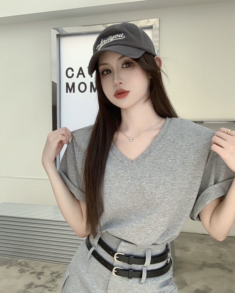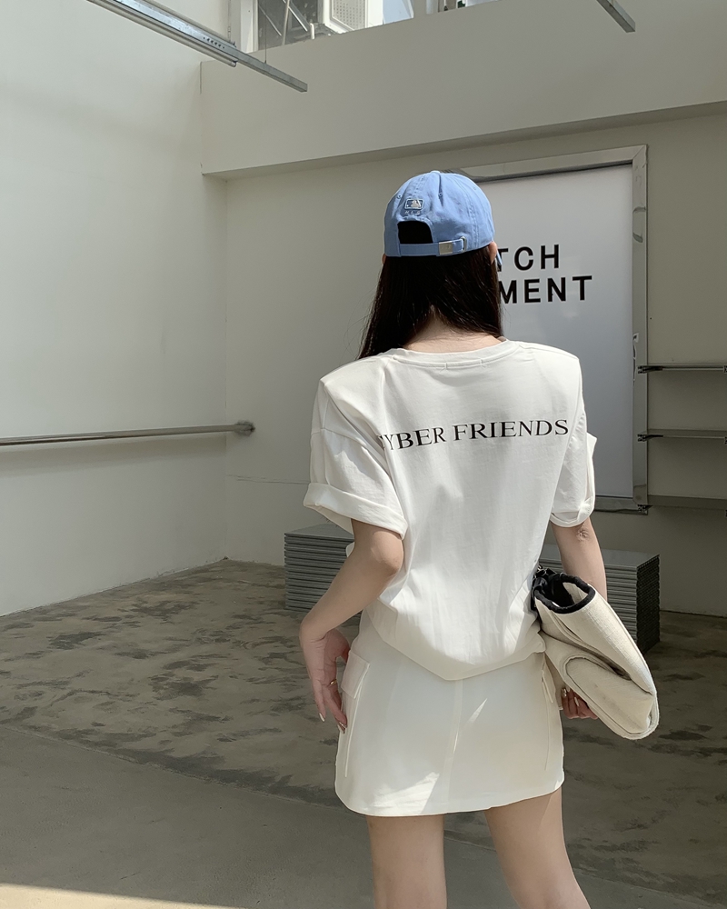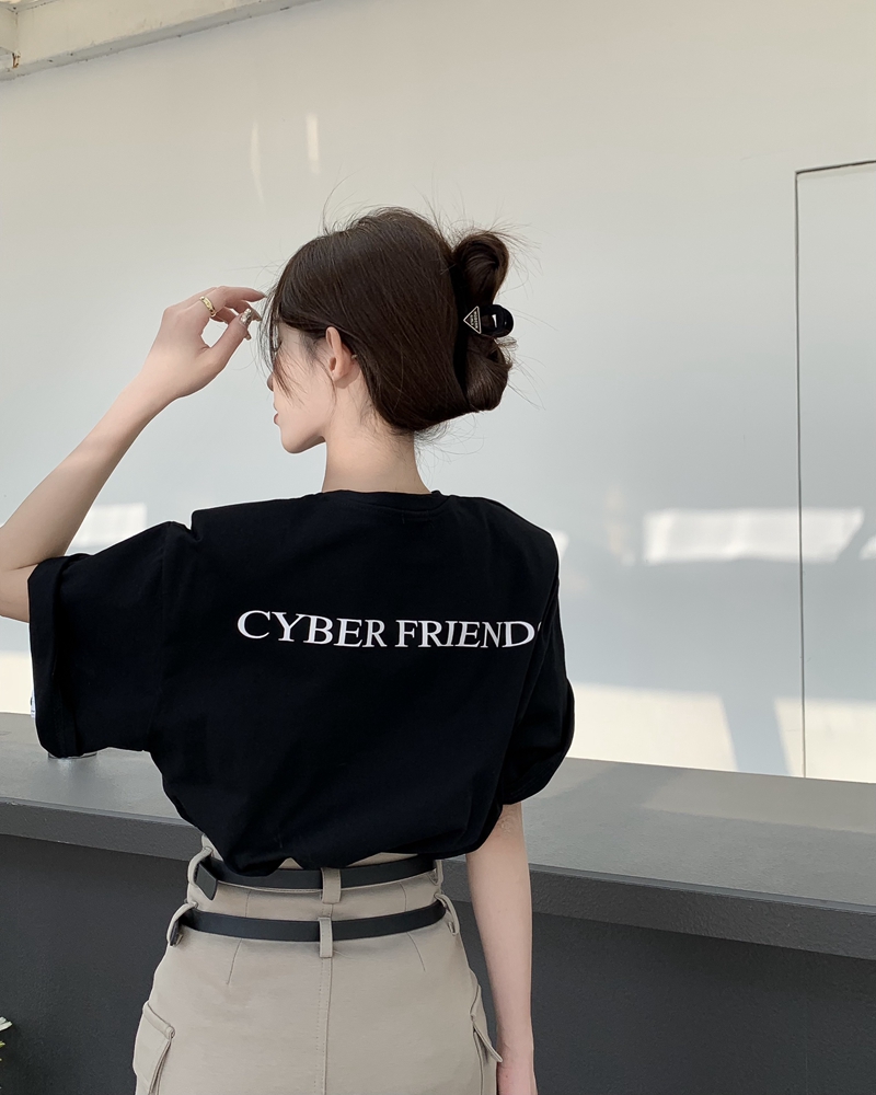 봄과 여름 뉴 홍콩 스타일 세련된 뒷문 인쇄 v- 넥 느슨한 캐주얼 어깨 패드 단락 티셔츠 트렌디