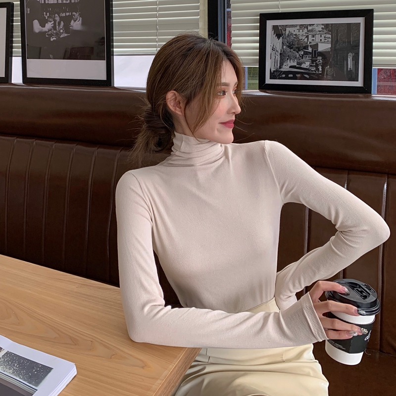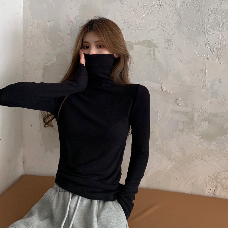 Wangdui Turtle Neck Cotton Shook Elastic Base Shirt와 Winter Hong Kong Style A와 Cool Black Brown 티셔츠의 실제 사진
