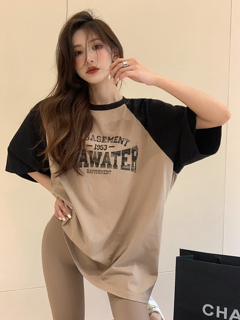여름 미국 레트로 프린트의 실제 사진 대비 대비 ragdoll 슬리브 슈퍼 편안한 반팔 티셔츠 in Top Trendy