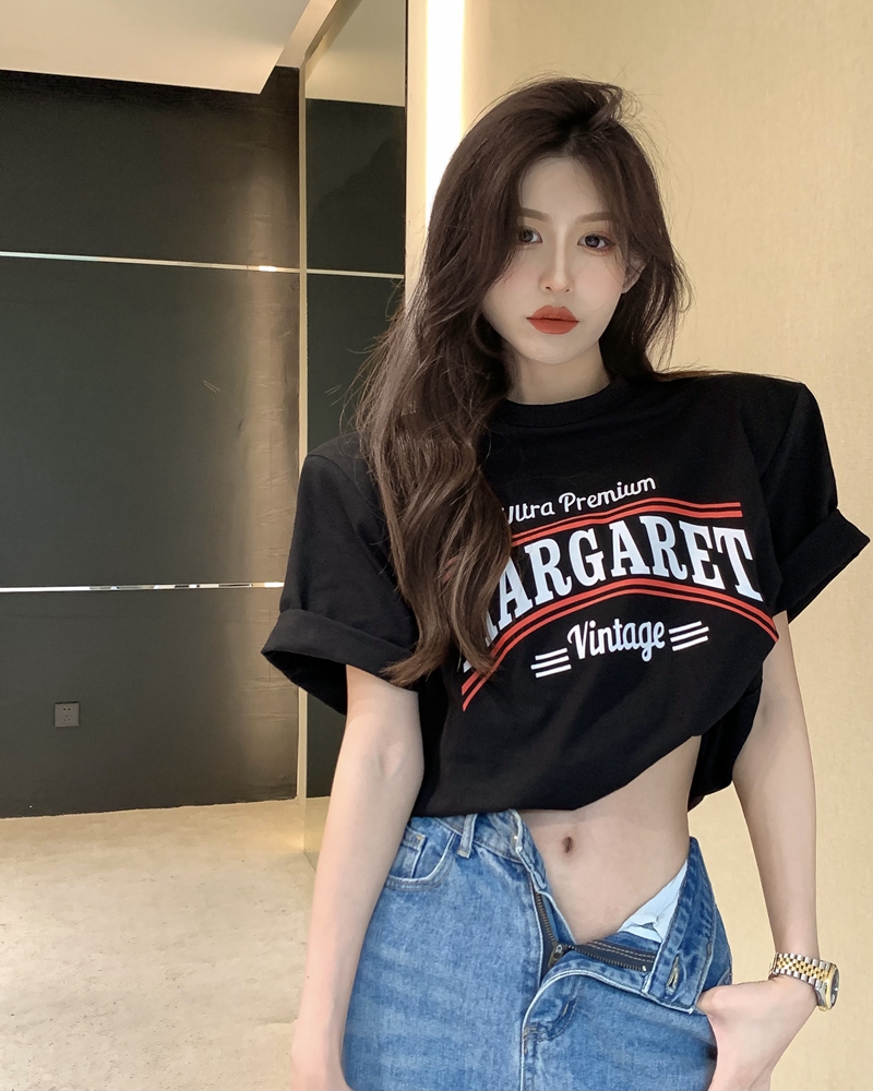 여름 홍콩 스타일의 실제 사진 느슨한 캐주얼 넓은 버전 숄더 패드 짧은 슬리브 티셔츠 대형 세련된 탑