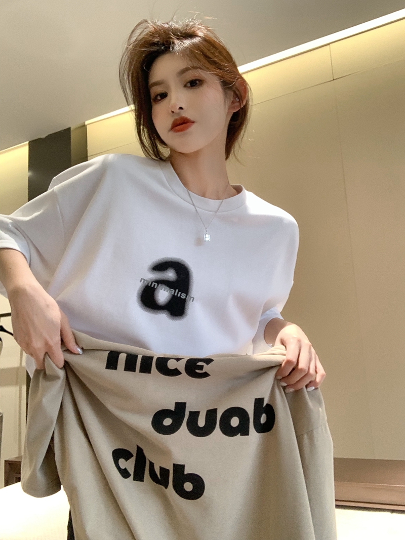 실제 봄과 여름 뉴 홍콩 스타일 디자인 편지 티셔츠 오버 사이즈 느슨한 면화 탑 티 트렌디