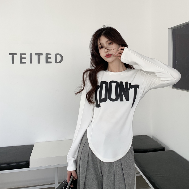겨울 홍콩 스타일의 실제 사진 개인화 된 문자 인쇄 분쇄면 슬림 핏 및 슬림 외부 및 내부베이스 티셔츠 탑